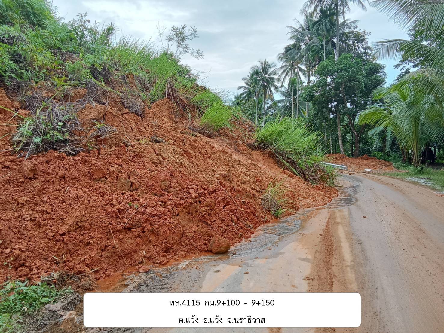 3. ทล.4115 สุคิริน - โต๊ะโม๊ะ ช่วง กม.ที่ 9+100 – 9+150 ดินโคลนถล่มทับผิวทาง