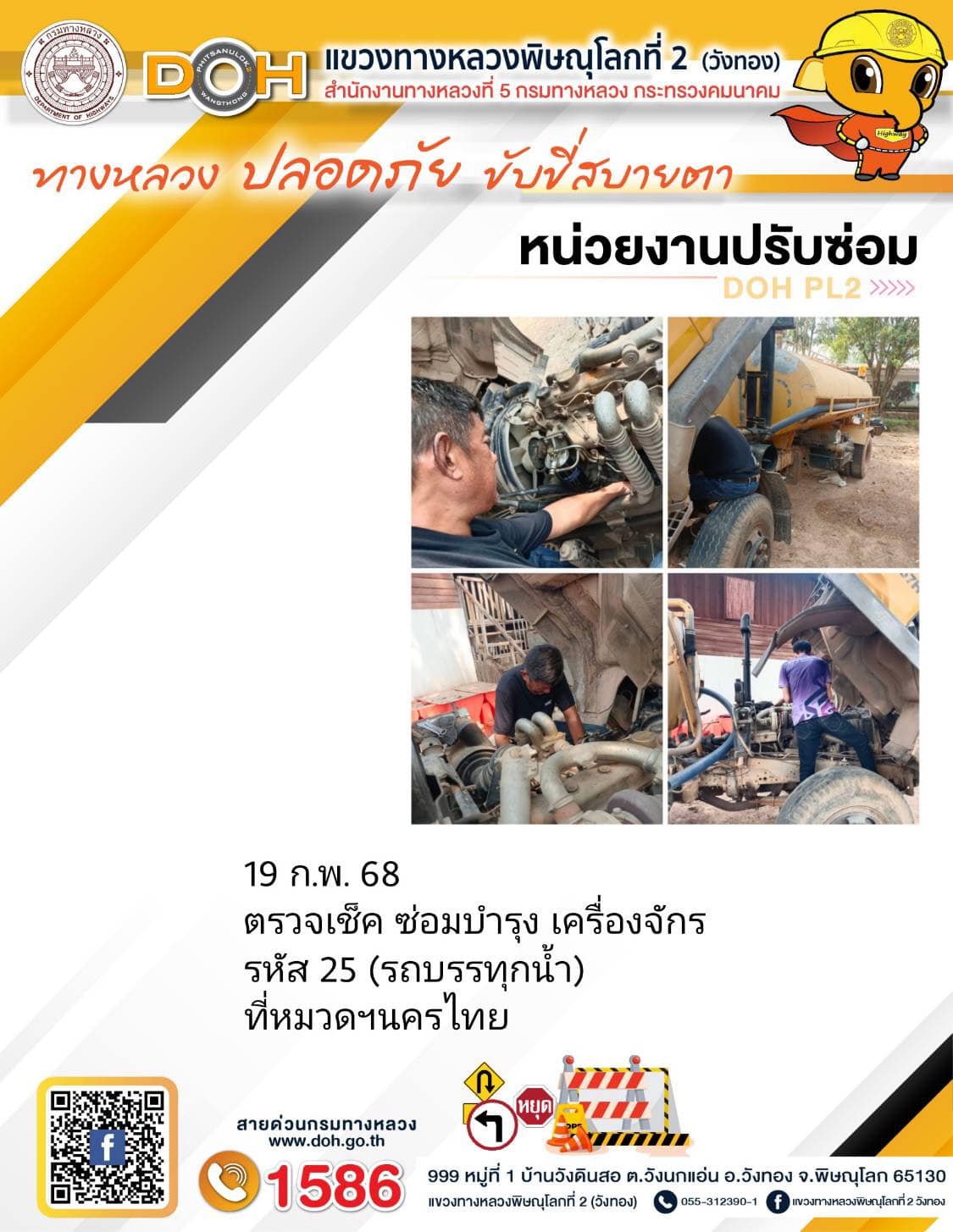 บริการประชาชนช่วงเทศกาลปีใหม่ 2562 แขวงทางหลวงพิษณุโลกที่ 2(วังทอง)