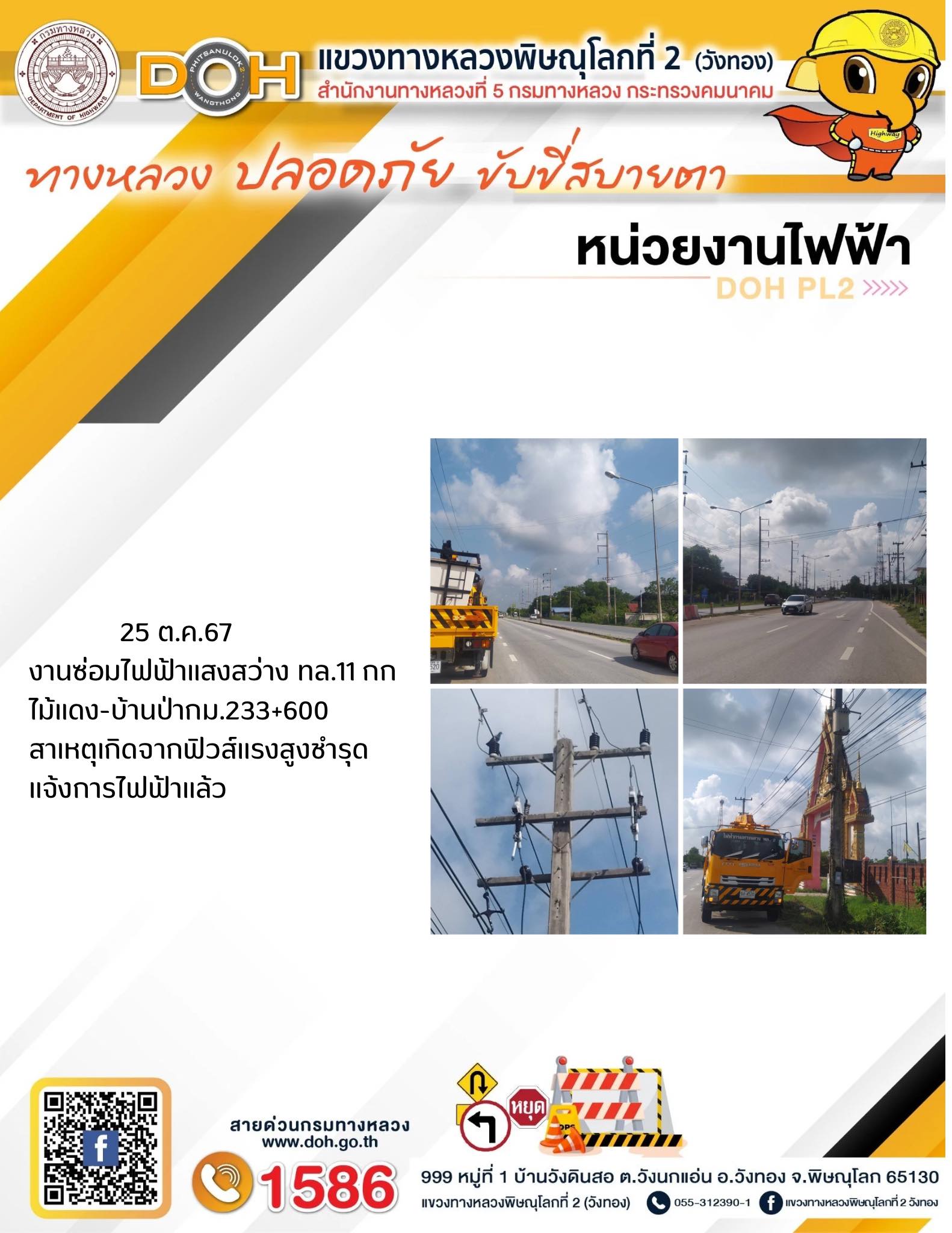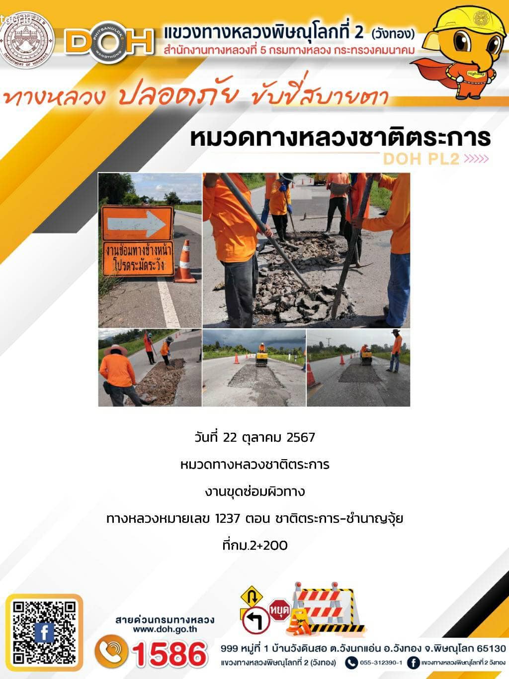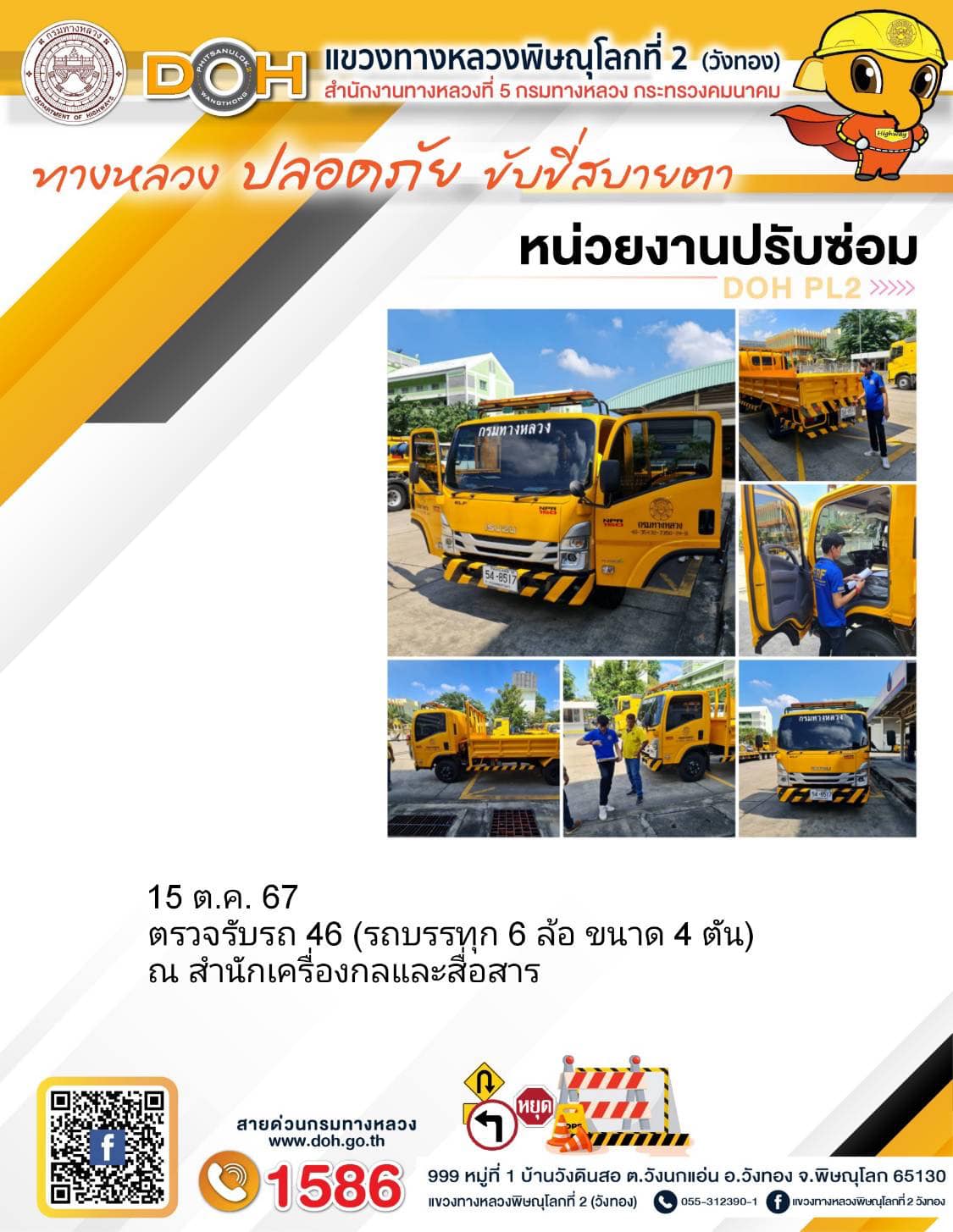 ตรวจเยี่ยม ศูนย์อำนวยความสะดวก และปลอดภัย แขวงทางหลวงพิษณุโลกที่ 2(วังทอง) บริเวณสี่แยกอินโดจีน