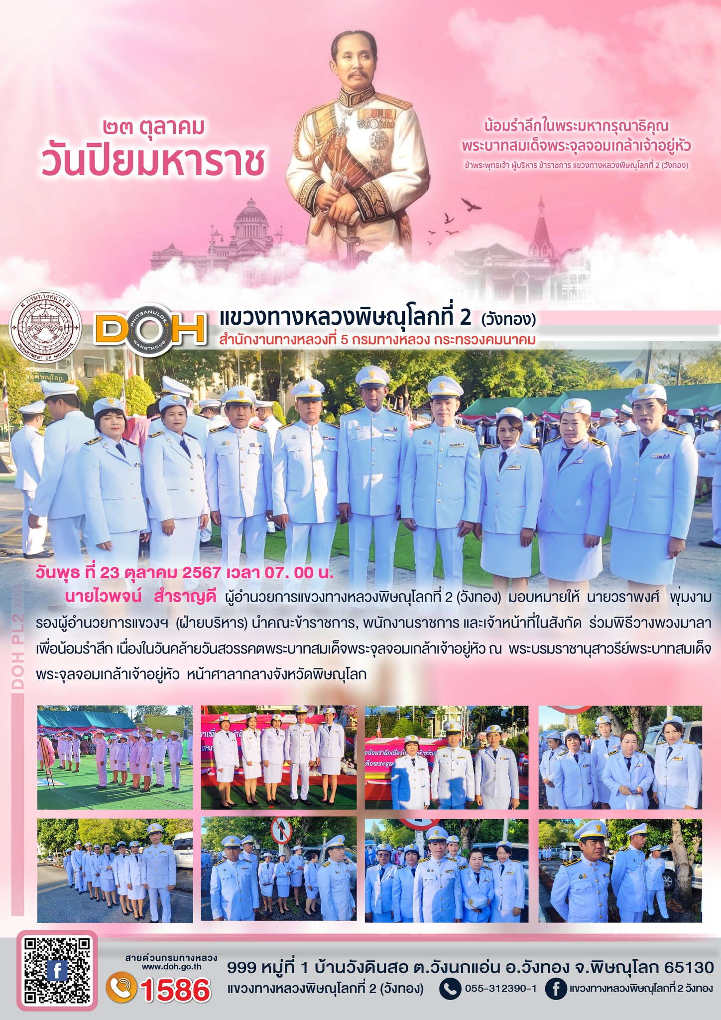 นายนรินทร์ ศรีสมพันธุ์ ผู้อำนวยการสำนักงานทางหลวงที่ 5 (พิษณุโลก) พร้อมคณะ ได้ตรวจเยี่ยม แขวงทางหลวงพิษณุโลกที่ 2 (วังทอง)