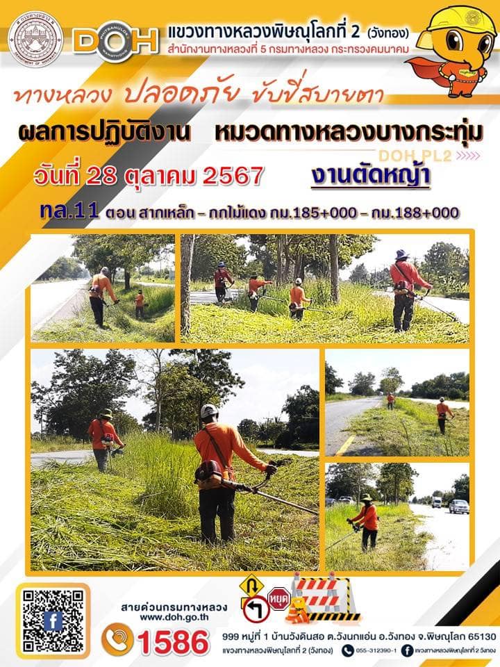 ผอ.แขวงทางหลวงพิษณุโลกที่ 2(วังทอง) นำทีม จนท.ดูการสาธิตทำแปลงทดลอง Green Control mat (ECM)