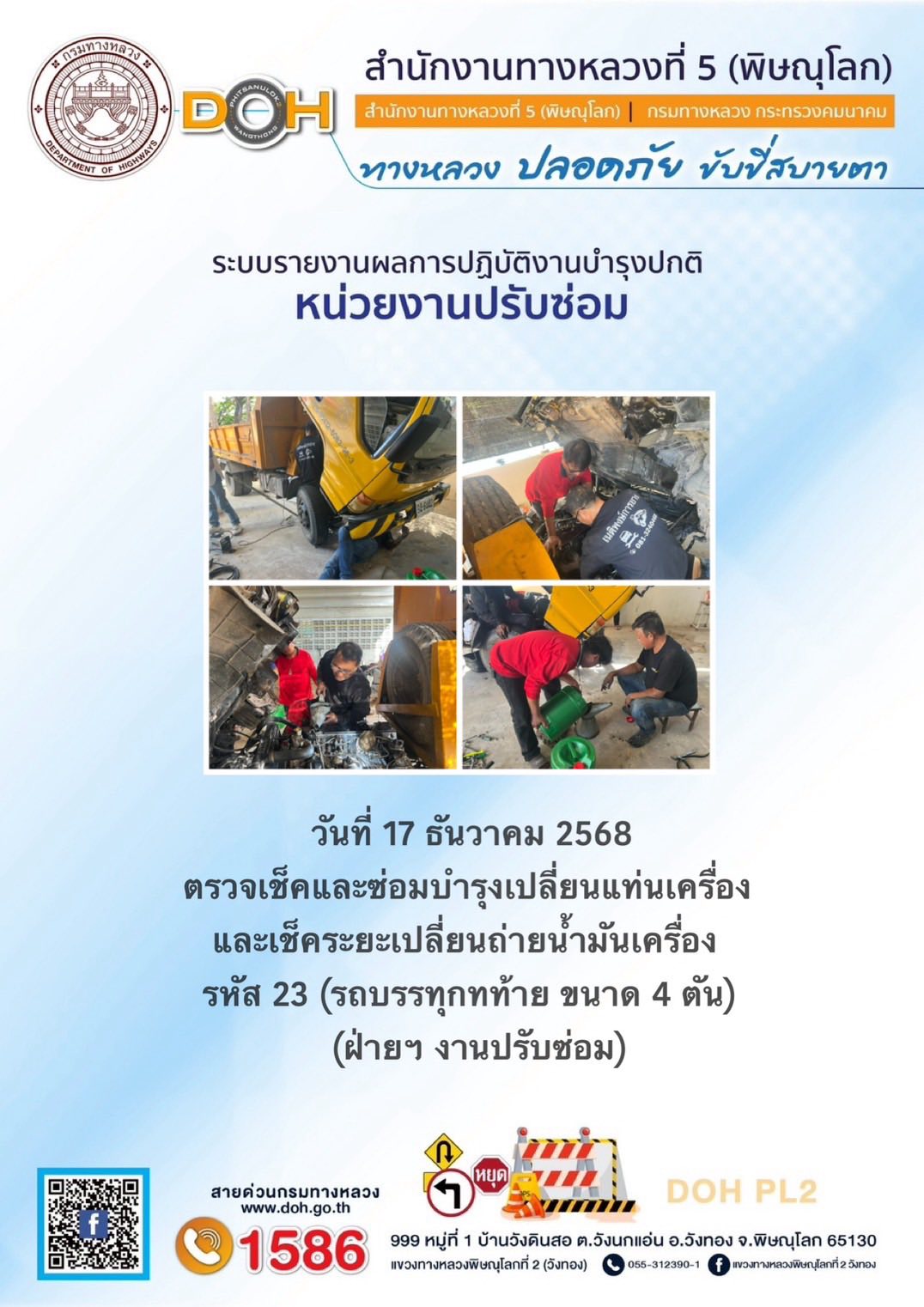 บริการประชาชนช่วงเทศกาลปีใหม่ 2562 แขวงทางหลวงพิษณุโลกที่ 2(วังทอง)