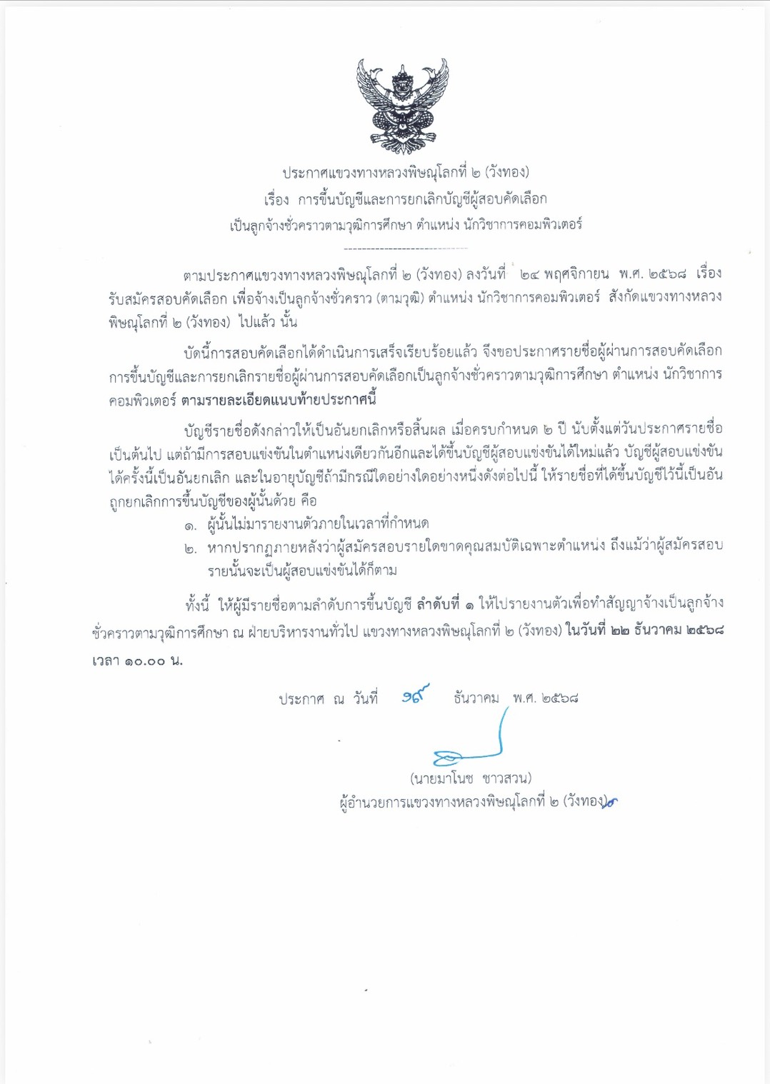 ประกาศรายชื่อ ผู้สอบแข่งขันได้และขึ้นบัญชีผู้สอบแข่งขัน ตำแหน่ง นักวิชาการคอมพิวเตอร์ (ตามวุฒิ)