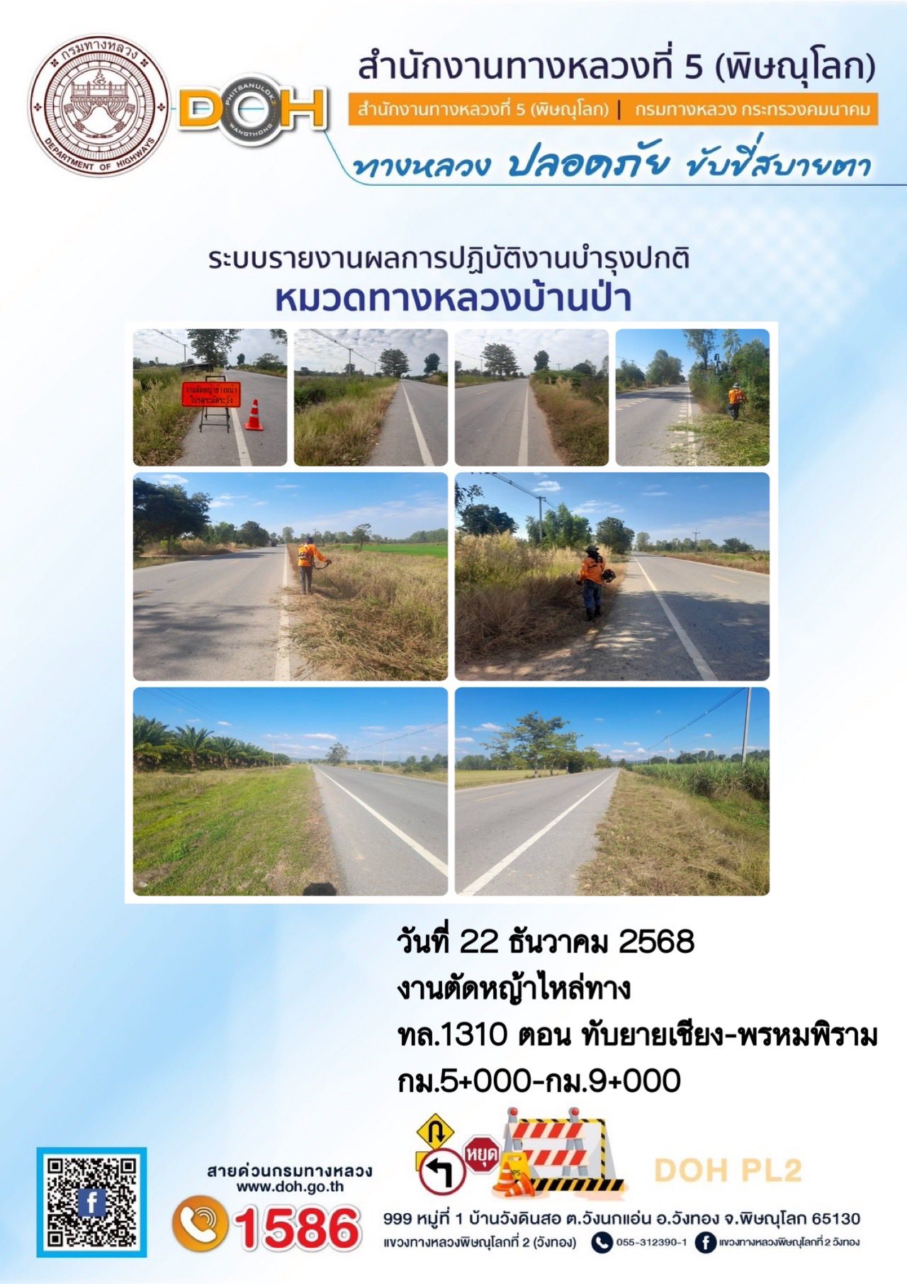 ตรวจเยี่ยม ศูนย์อำนวยความสะดวก และปลอดภัย แขวงทางหลวงพิษณุโลกที่ 2(วังทอง) บริเวณสี่แยกอินโดจีน