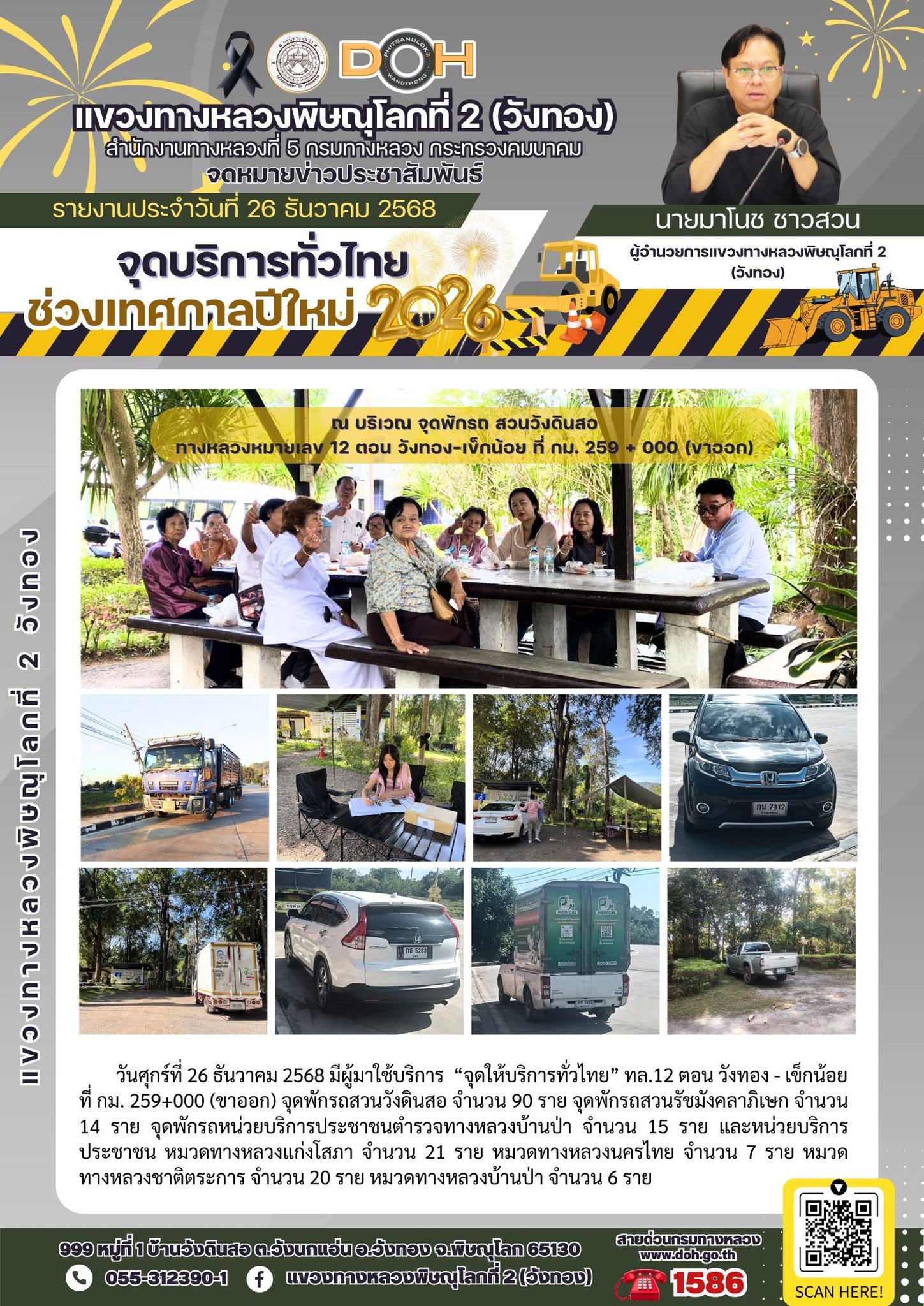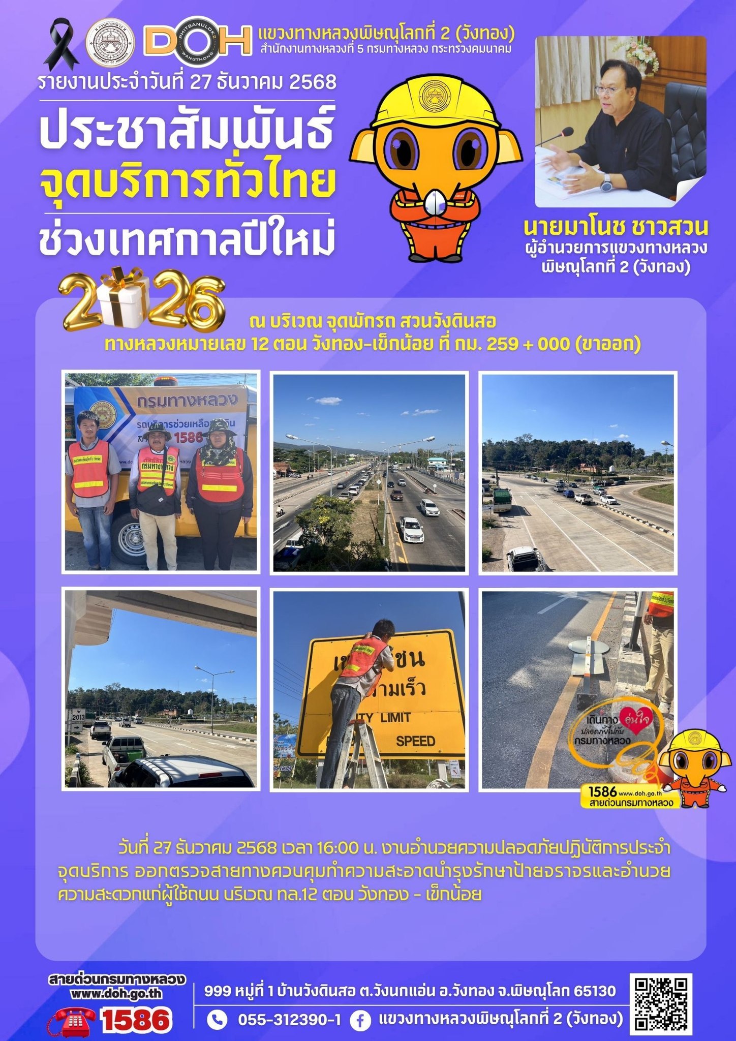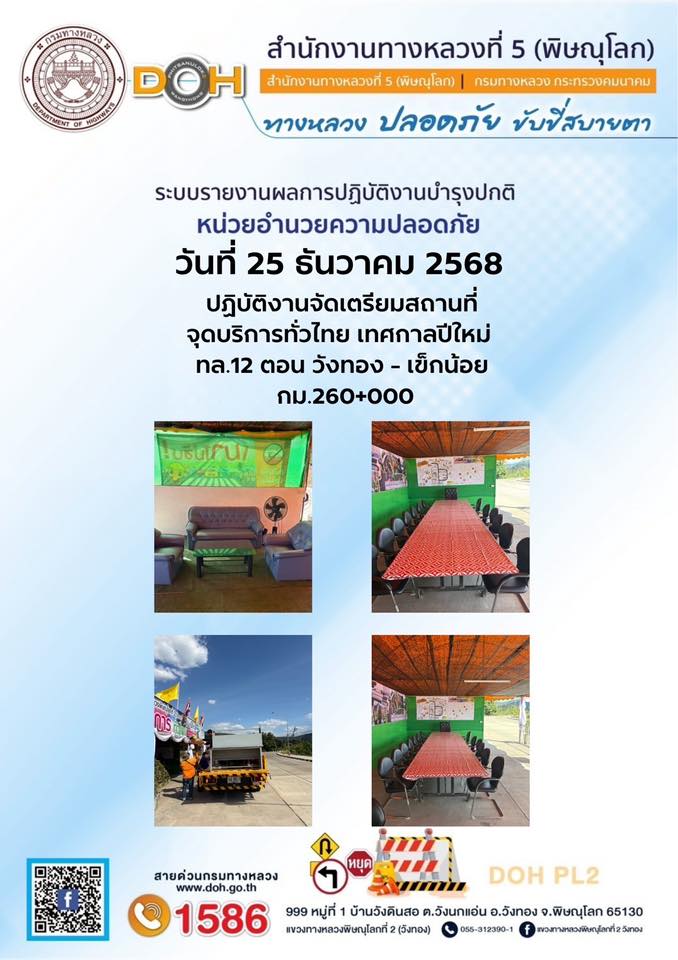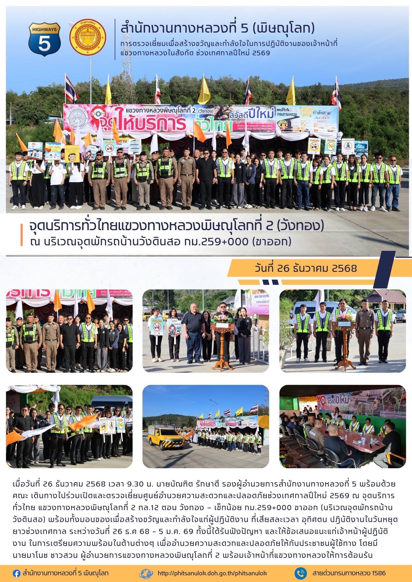 แขวงทางหลวงพิษณุโลกที่ 2 เปิดศูนย์อำนวยความสะดวกและปลอดภัยช่วงปีใหม่