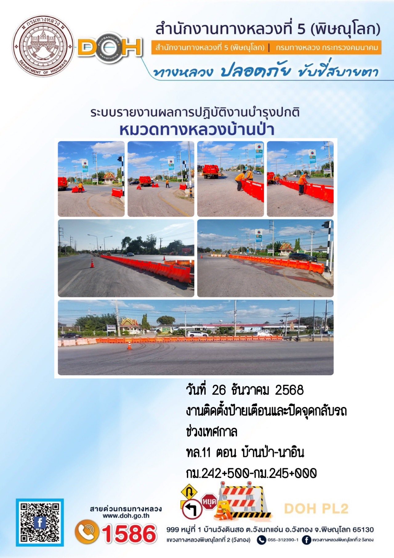 ประชาสัมพันธ์ แผนผังจัดการจราจร โครงการก่อสร้างสะพานข้ามแยกจุดตัด ทล.11 กับ ทล.12(แยกอินโดจีน) จ.พิษณุโลก