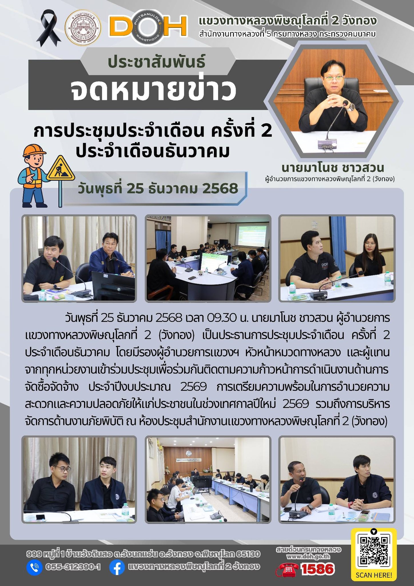 แขวงทางหลวงพิษณุโลกที่ 2 (วังทอง) จัดประชุมเพื่อปรึกษาหารือร่วมกัน กับ ผู้รับจ้าง ฯ