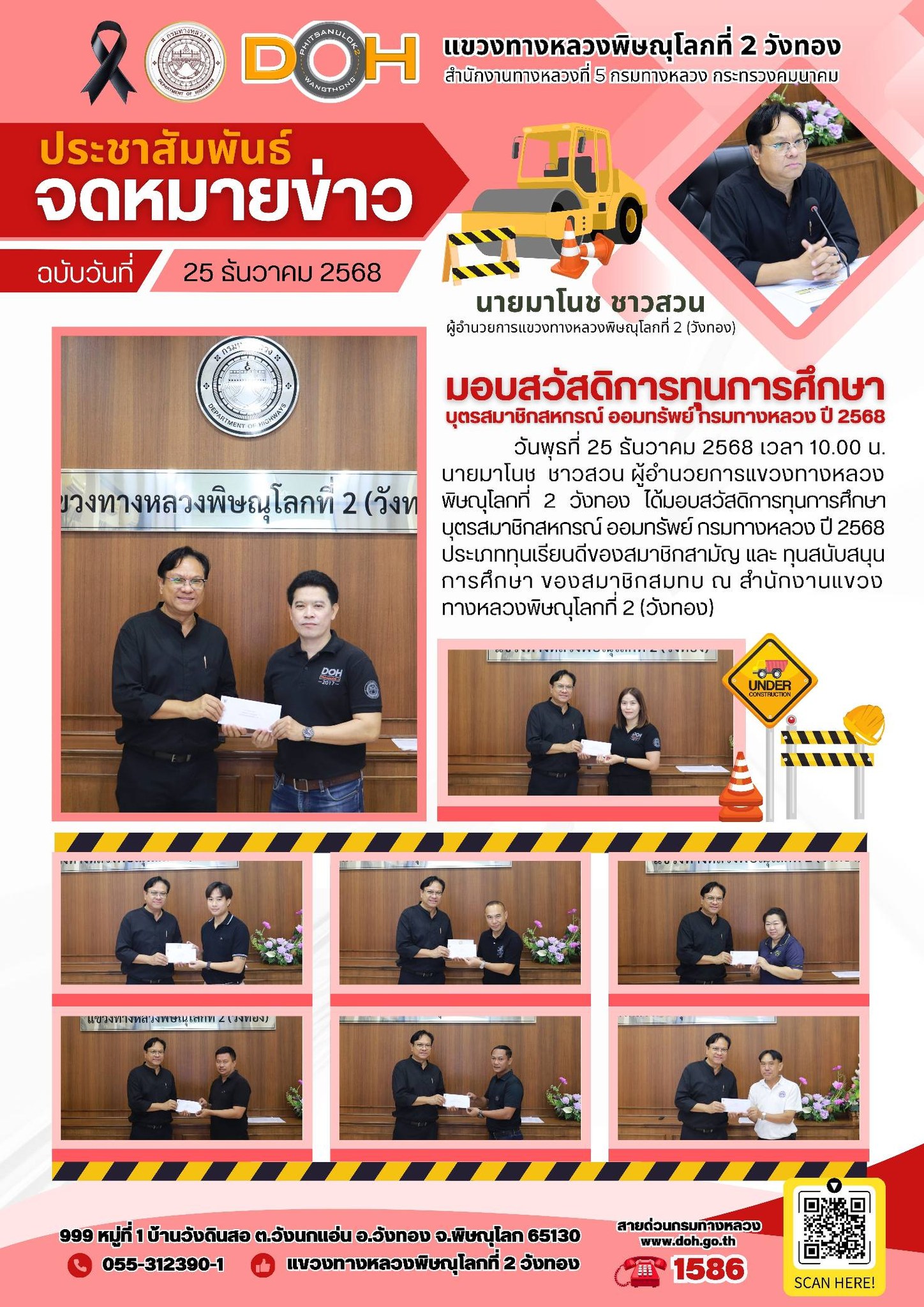 มอบสวัสดิการทุนการศึกษา บุตรสมาชิกสหกรณ์ ออมทรัพย์ กรมทางหลวง ปี 2568