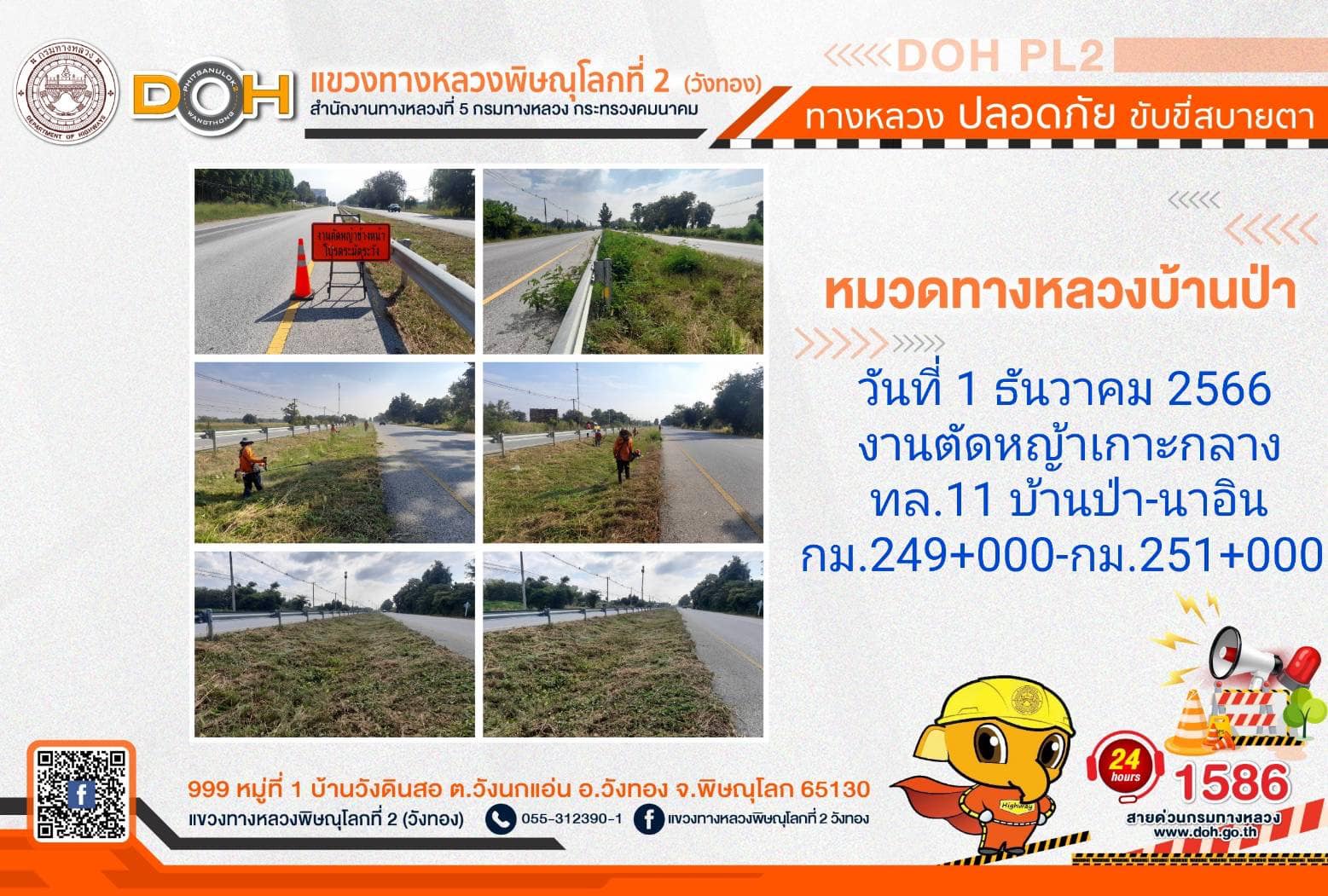 ผอ.แขวงทางหลวงพิษณุโลกที่ 2(วังทอง) นำทีม จนท.ดูการสาธิตทำแปลงทดลอง Green Control mat (ECM)
