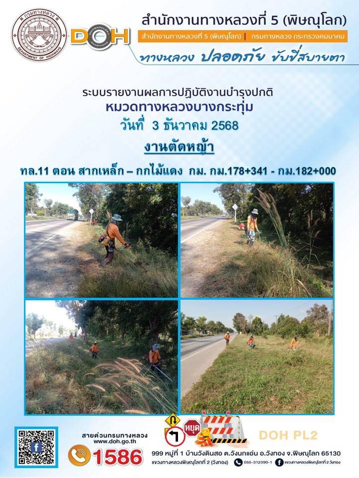 ผอ.แขวงทางหลวงพิษณุโลกที่ 2(วังทอง) นำทีม จนท.ดูการสาธิตทำแปลงทดลอง Green Control mat (ECM)