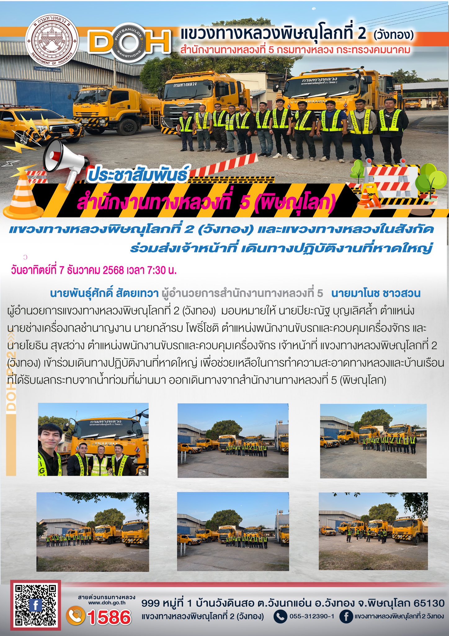 ตรวจเยี่ยม ศูนย์อำนวยความสะดวก และปลอดภัย แขวงทางหลวงพิษณุโลกที่ 2(วังทอง) บริเวณสี่แยกอินโดจีน