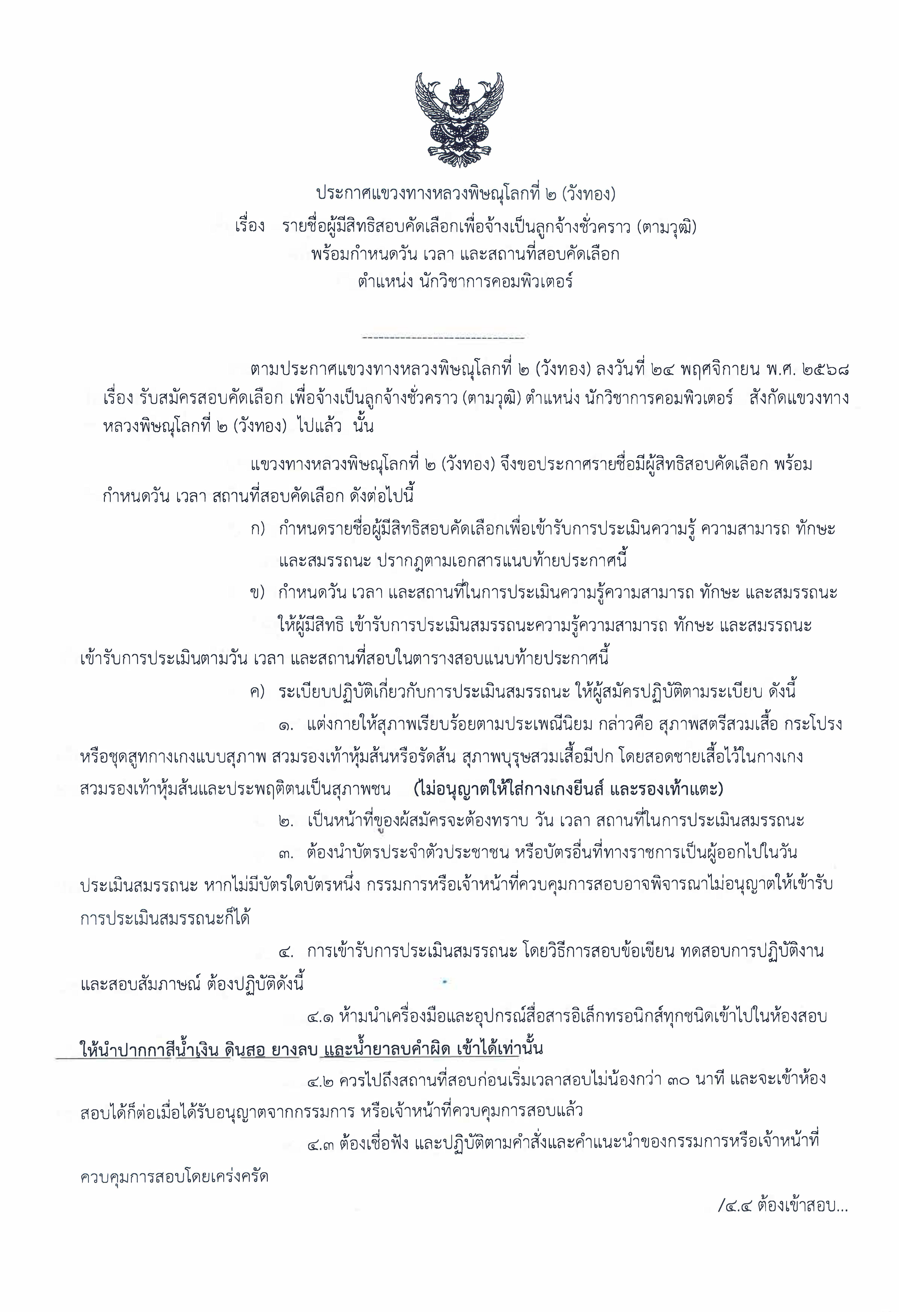 ประกาศรายชื่อผู้มีสิทธิ์สอบนักวิชาการคอมพิวเตอร์