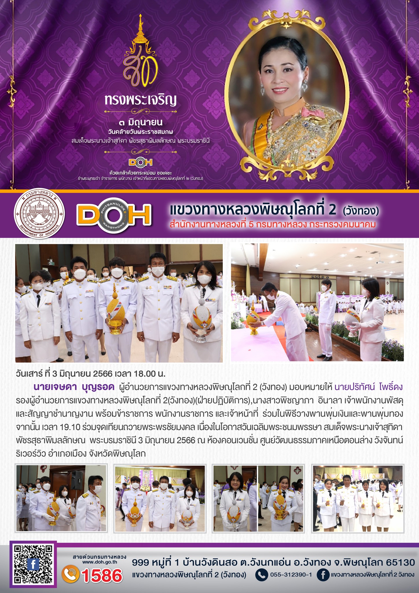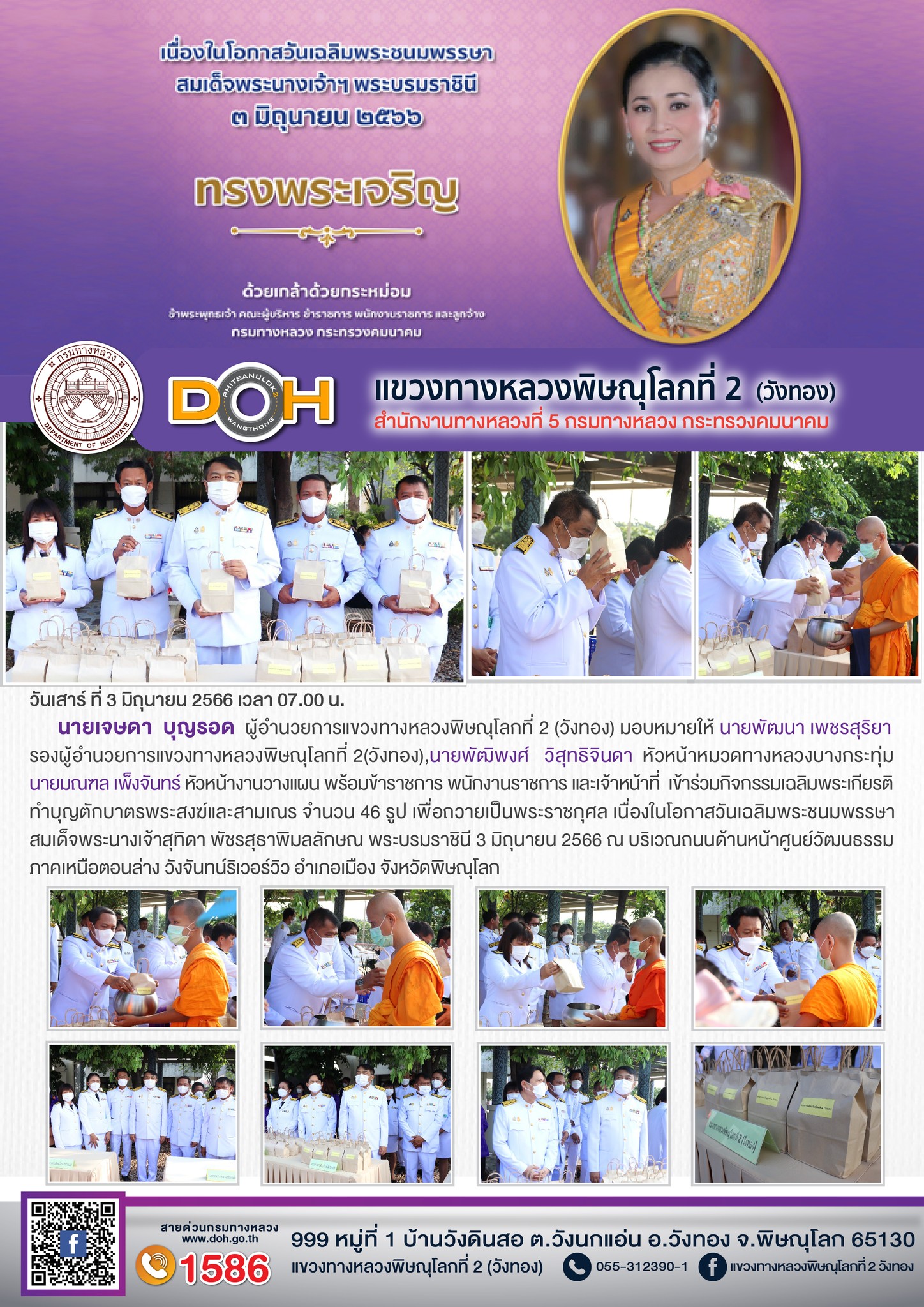 นายนรินทร์ ศรีสมพันธุ์ ผู้อำนวยการสำนักงานทางหลวงที่ 5 (พิษณุโลก) พร้อมคณะ ได้ตรวจเยี่ยม แขวงทางหลวงพิษณุโลกที่ 2 (วังทอง)