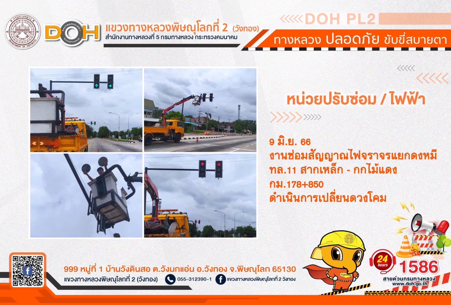 ตรวจเยี่ยม ศูนย์อำนวยความสะดวก และปลอดภัย แขวงทางหลวงพิษณุโลกที่ 2(วังทอง) บริเวณสี่แยกอินโดจีน