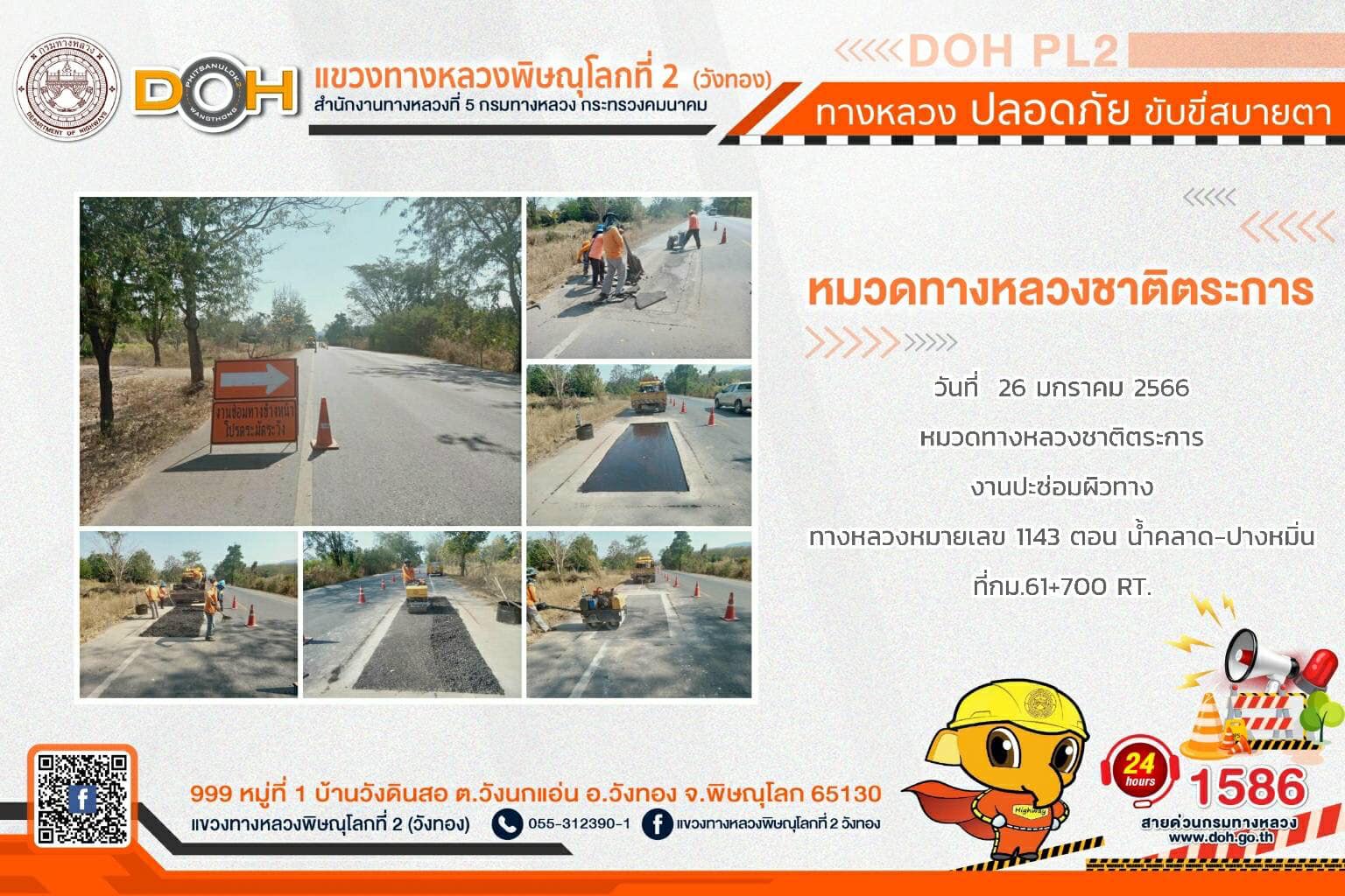 บริการประชาชนช่วงเทศกาลปีใหม่ 2562 แขวงทางหลวงพิษณุโลกที่ 2(วังทอง)