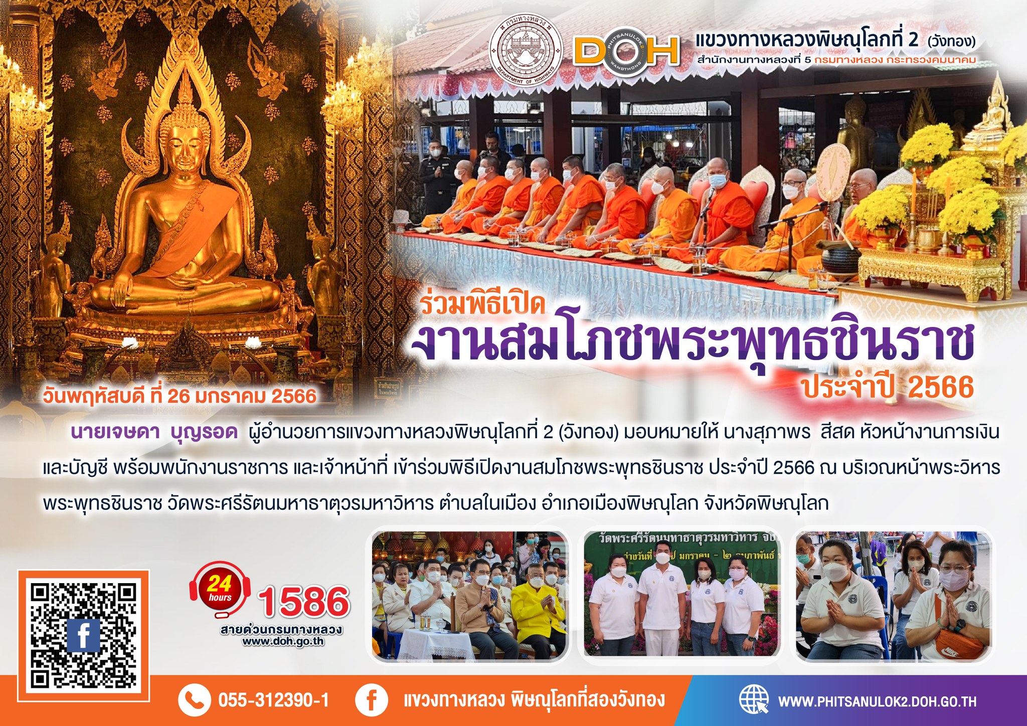 แขวงทางหลวงพิษณุโลกที่ 2 เปิดศูนย์อำนวยความสะดวกและปลอดภัยช่วงปีใหม่