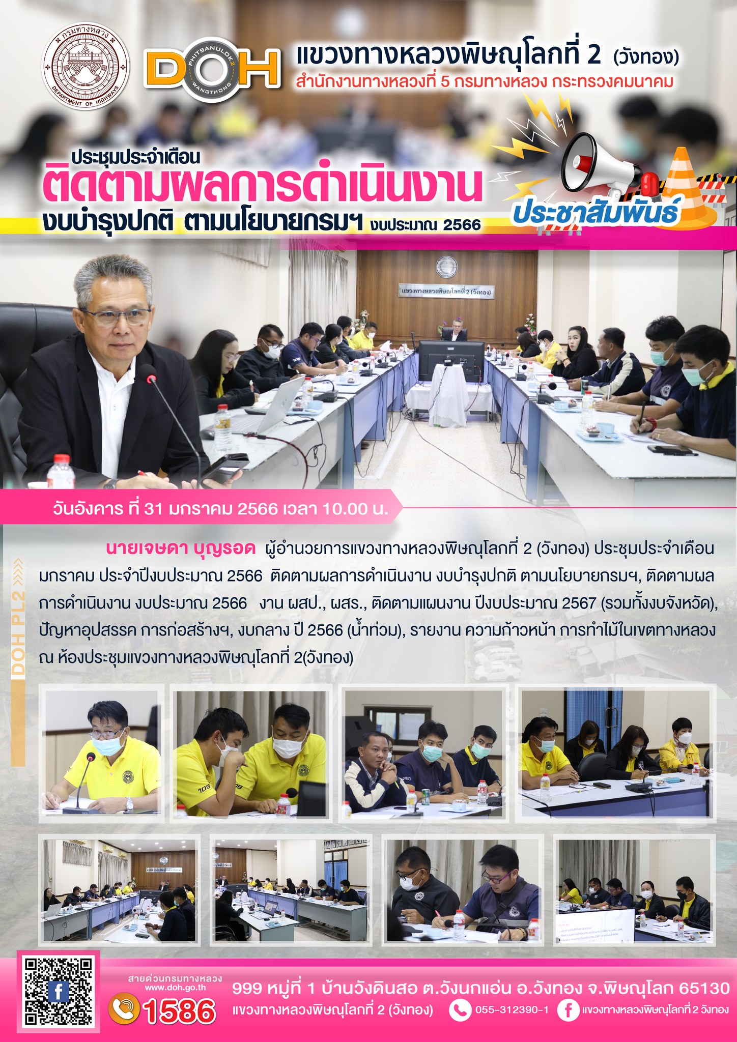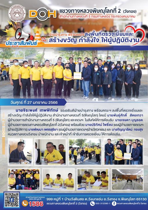 นายนรินทร์ ศรีสมพันธุ์ ผู้อำนวยการสำนักงานทางหลวงที่ 5 (พิษณุโลก) พร้อมคณะ ได้ตรวจเยี่ยม แขวงทางหลวงพิษณุโลกที่ 2 (วังทอง)