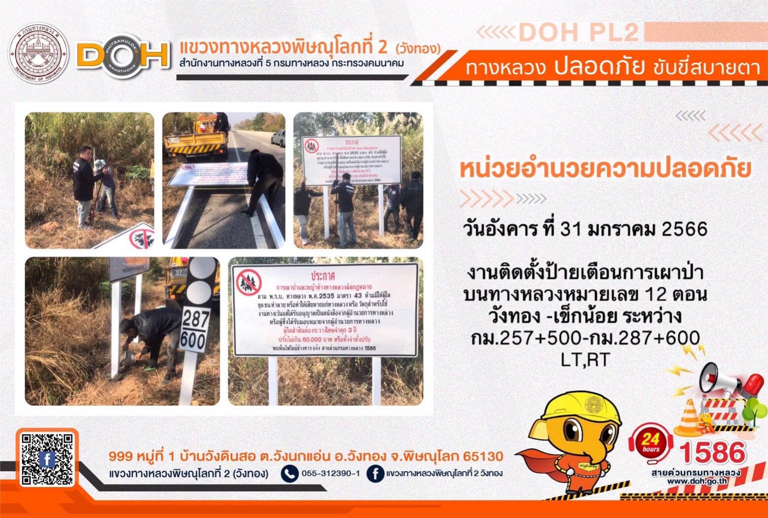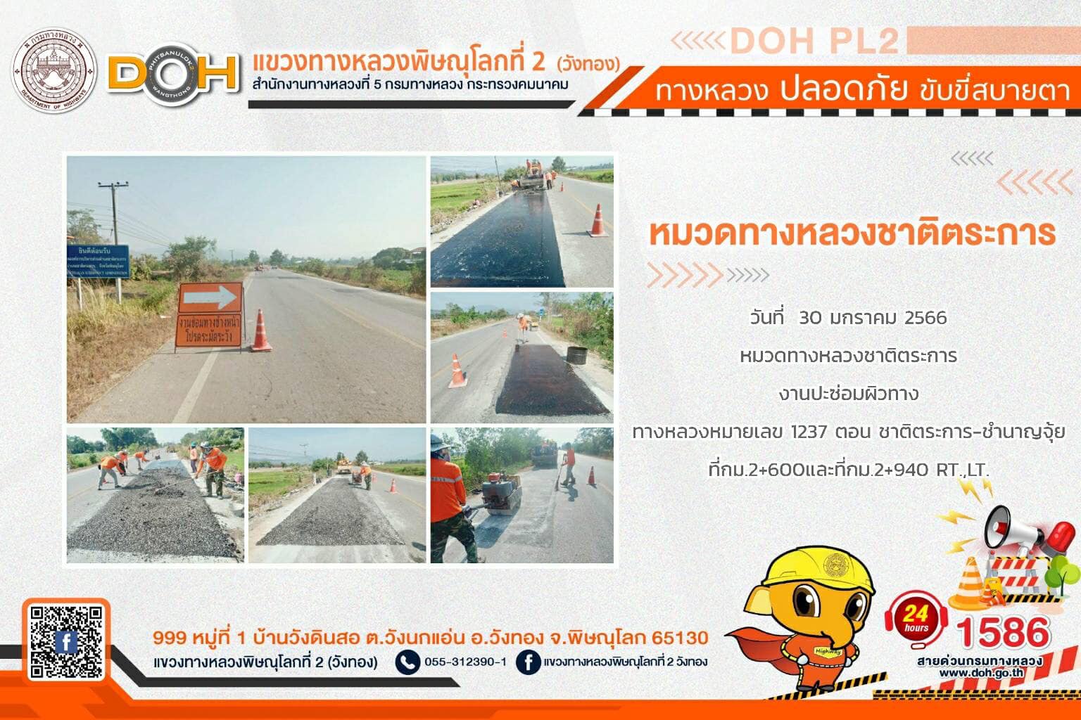 ตรวจเยี่ยม ศูนย์อำนวยความสะดวก และปลอดภัย แขวงทางหลวงพิษณุโลกที่ 2(วังทอง) บริเวณสี่แยกอินโดจีน