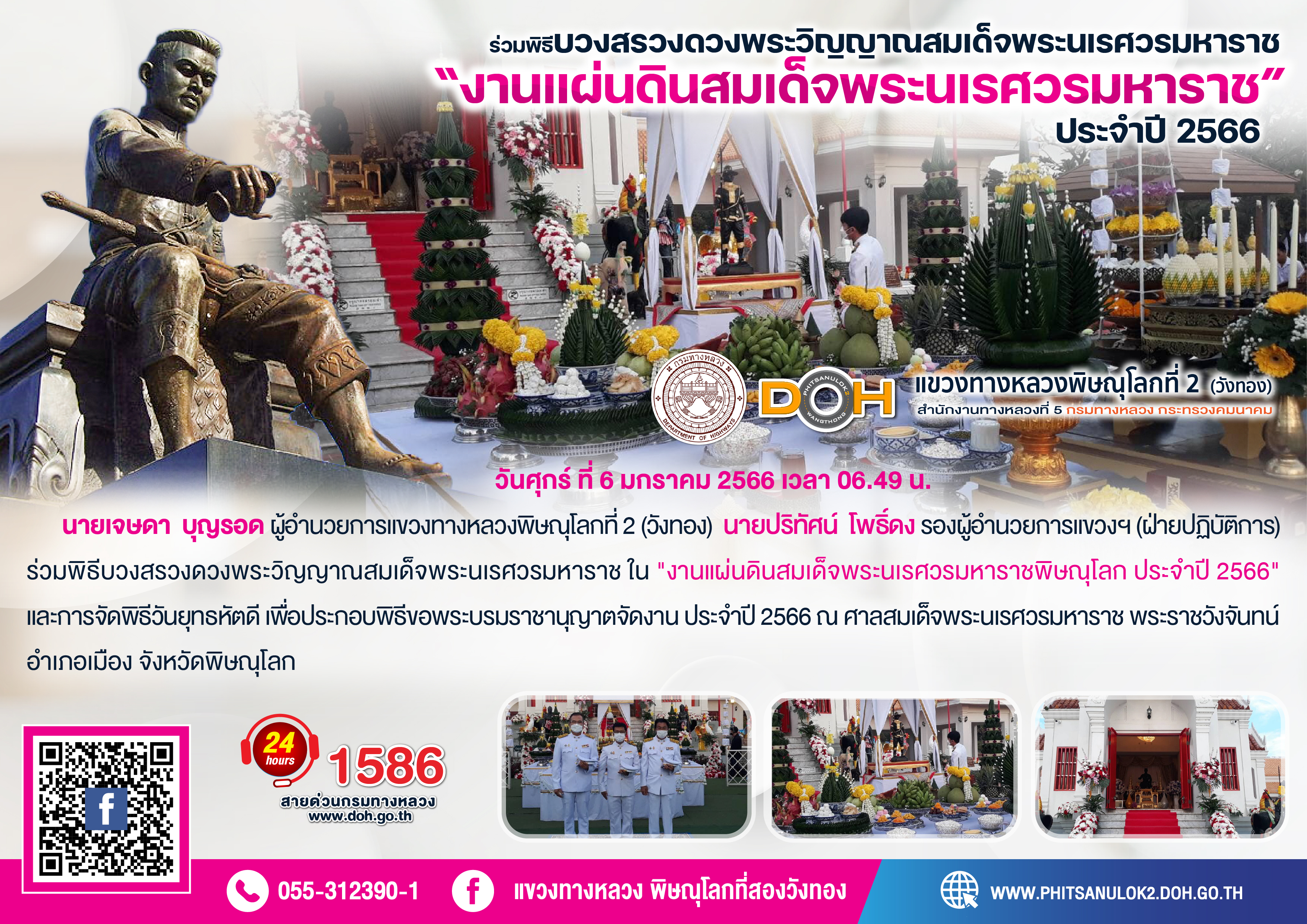 ร่วมพิธีบวงสรวงดวงพระวิญญาณสมเด็จพระนเรศวรมหาราช ใน "งานแผ่นดินสมเด็จพระนเรศวรมหาราชพิษณุโลก ประจำปี 2566"