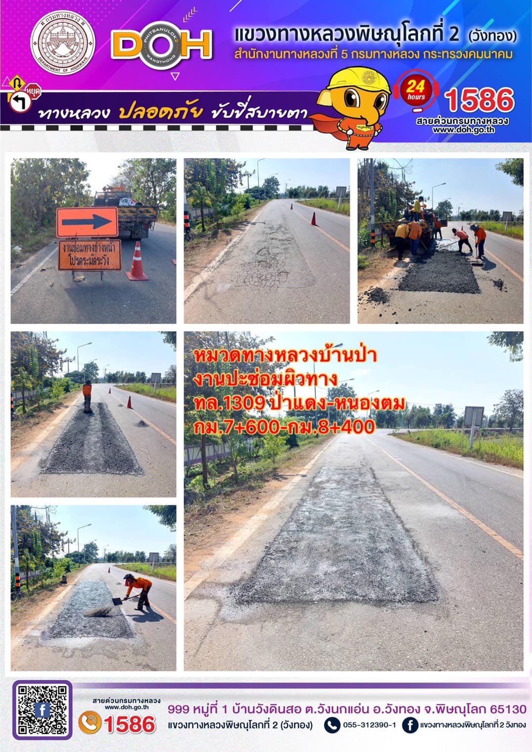 ตรวจเยี่ยม ศูนย์อำนวยความสะดวก และปลอดภัย แขวงทางหลวงพิษณุโลกที่ 2(วังทอง) บริเวณสี่แยกอินโดจีน