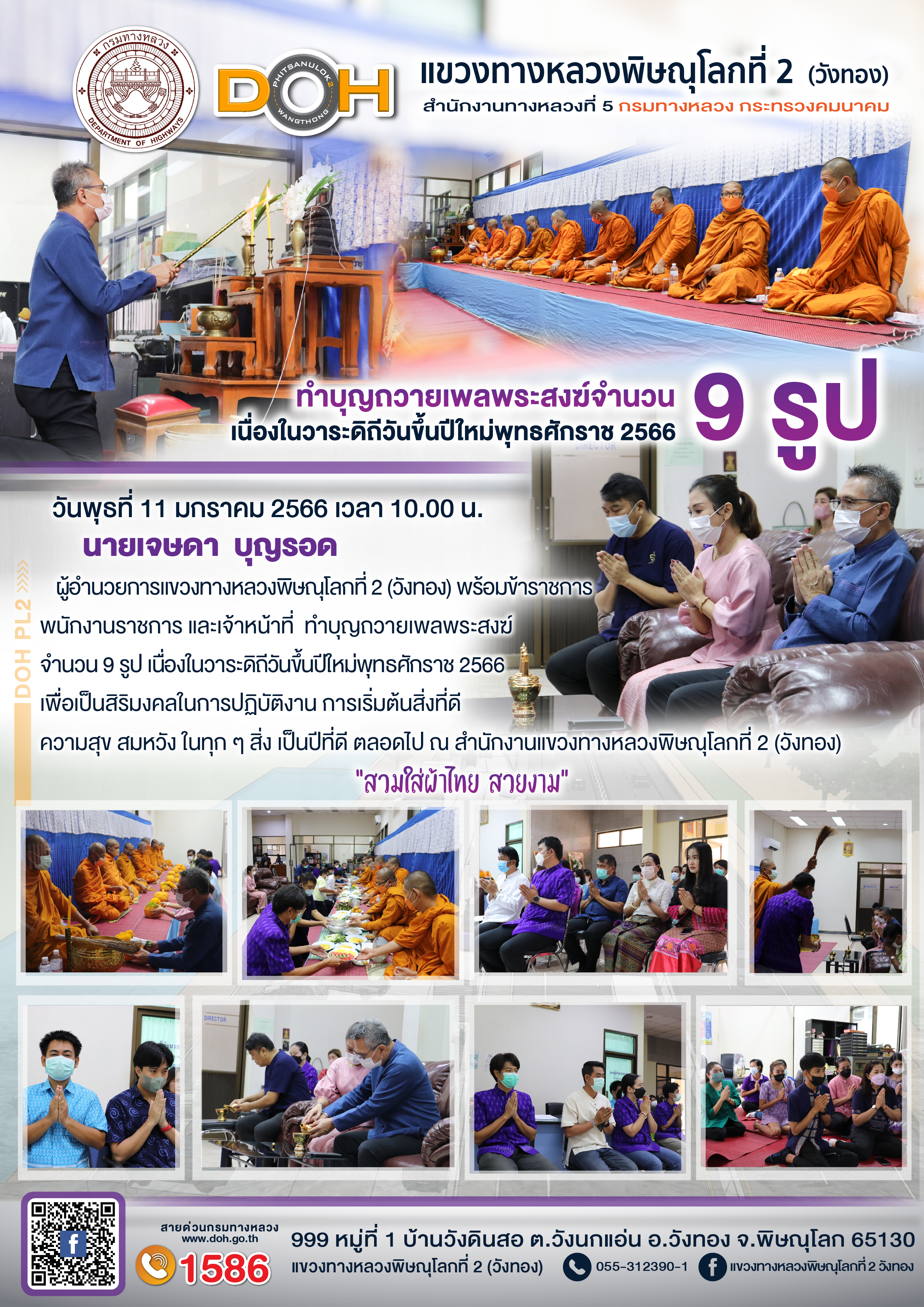 แขวงทางหลวงพิษณุโลกที่ 2 เปิดศูนย์อำนวยความสะดวกและปลอดภัยช่วงปีใหม่