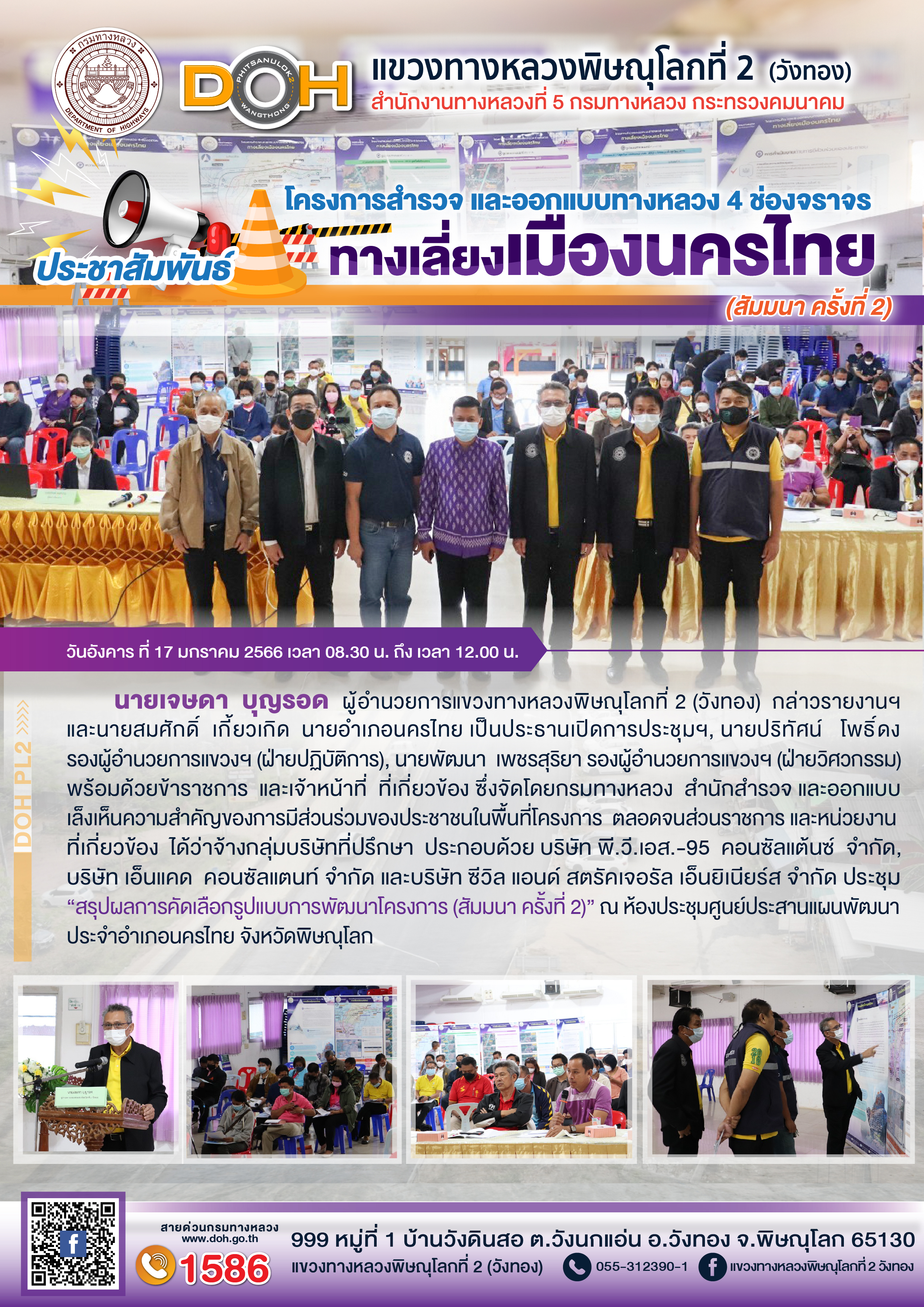 แขวงทางหลวงพิษณุโลกที่ 2 (วังทอง) จัดประชุมเพื่อปรึกษาหารือร่วมกัน กับ ผู้รับจ้าง ฯ