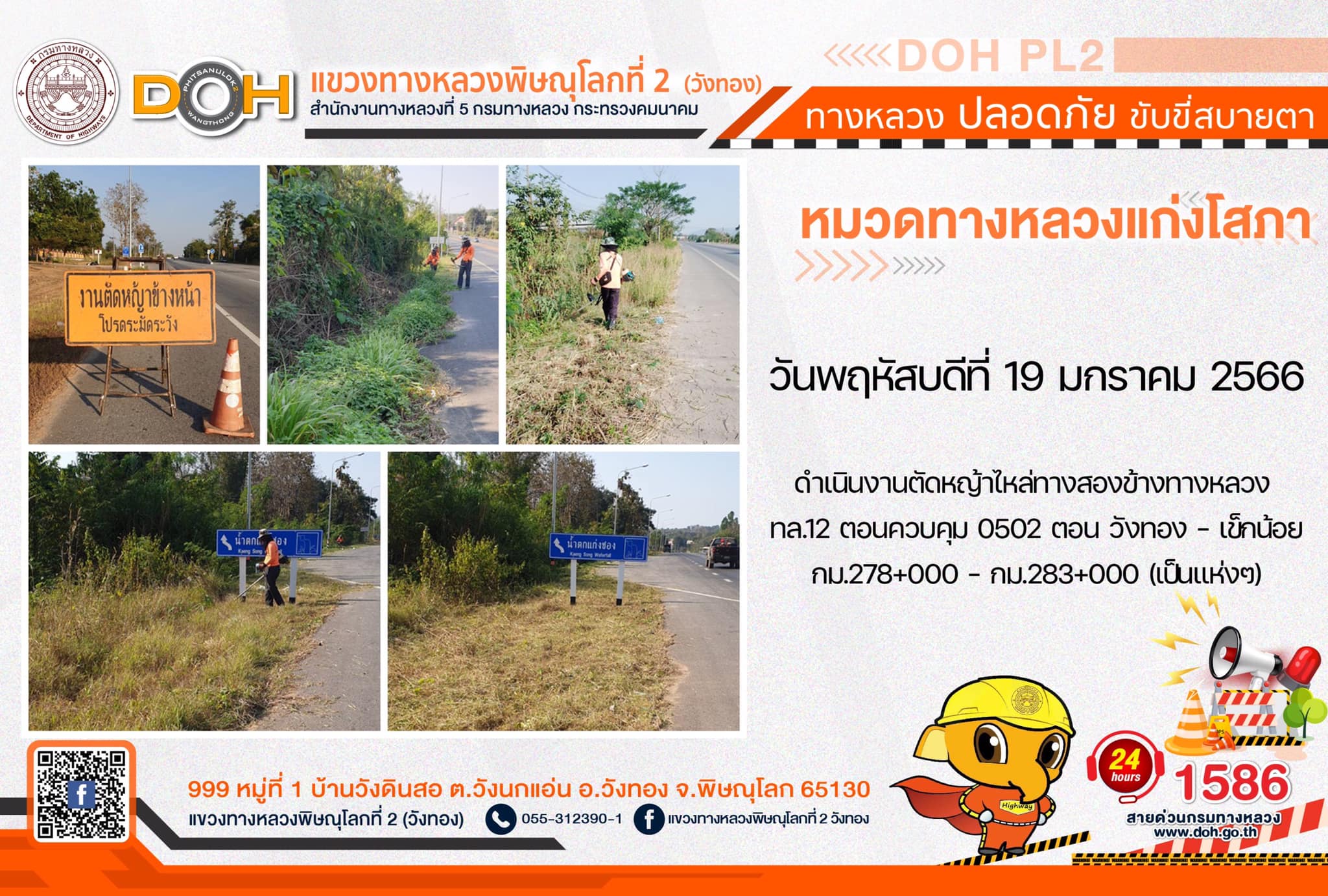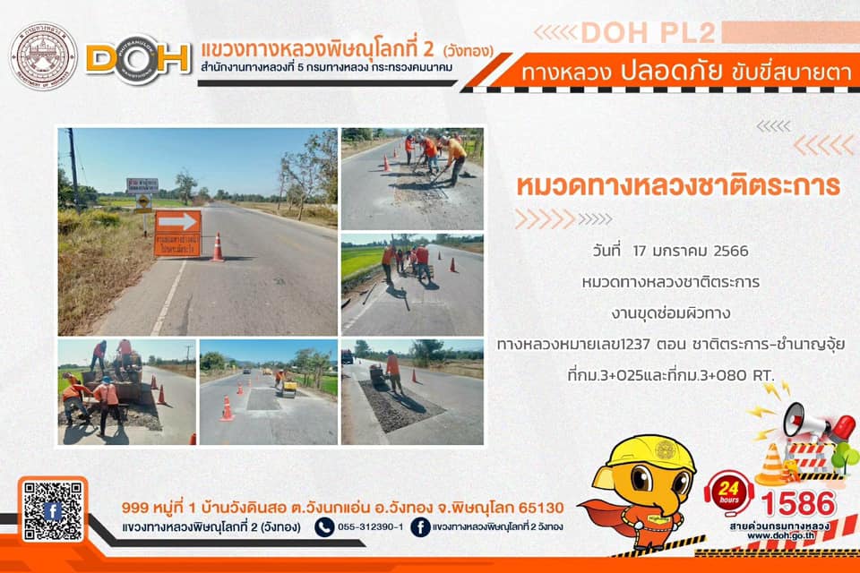 การปฏิบัติงาน ประจำ วันพฤหัสบดีที่ 19 มกราคม 2566 #1586 สายด่วนกรมทางหลวง
