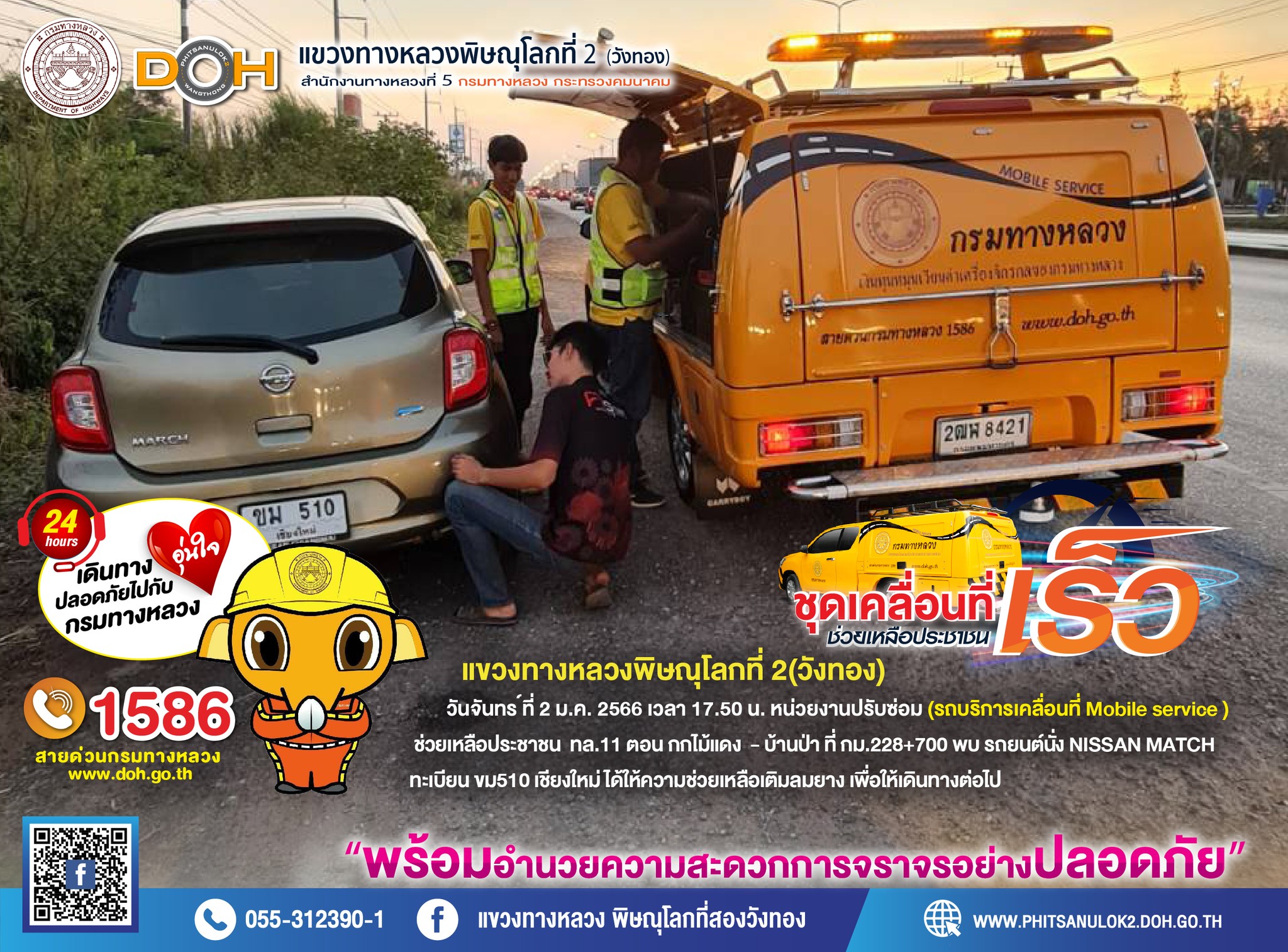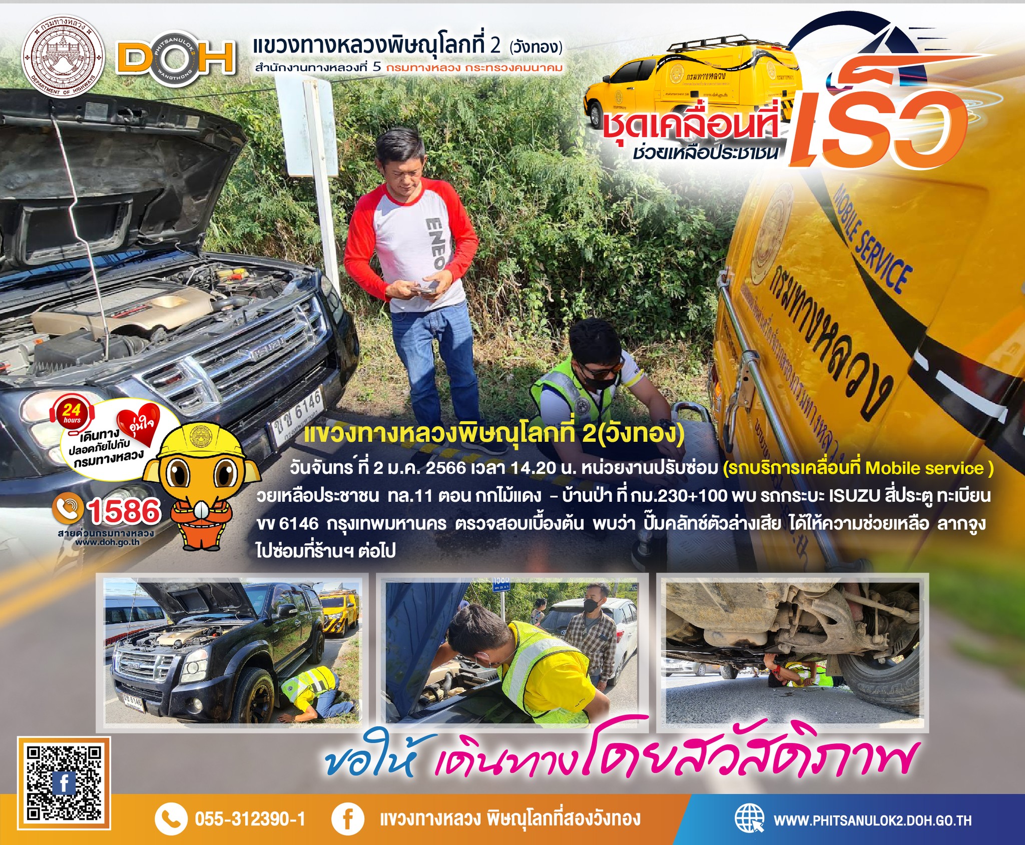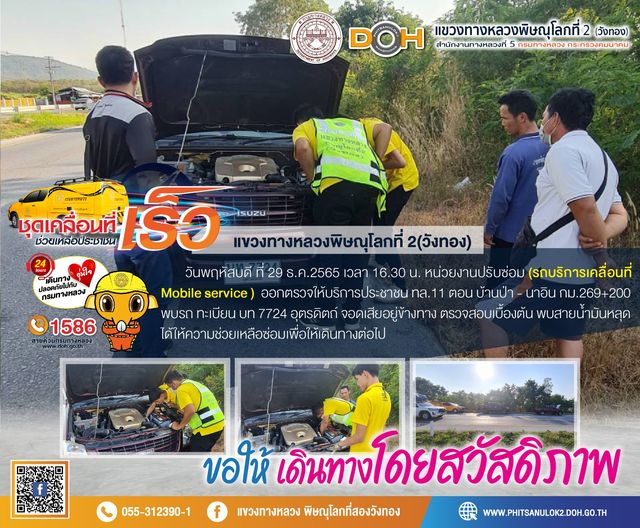 วันเสาร์ที่ 31 ธ.ค. 2565 เวลา 12.00 น. หน่วยงานปรับซ่อม รถบริการเคลื่อนที่ (Mobile service) ช่วยเหลือประชาชน ทล.12