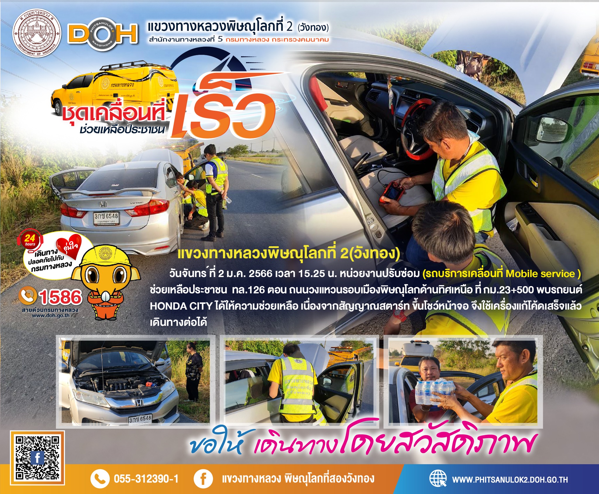 แขวงทางหลวงพิษณุโลกที่ 2 เปิดศูนย์อำนวยความสะดวกและปลอดภัยช่วงปีใหม่