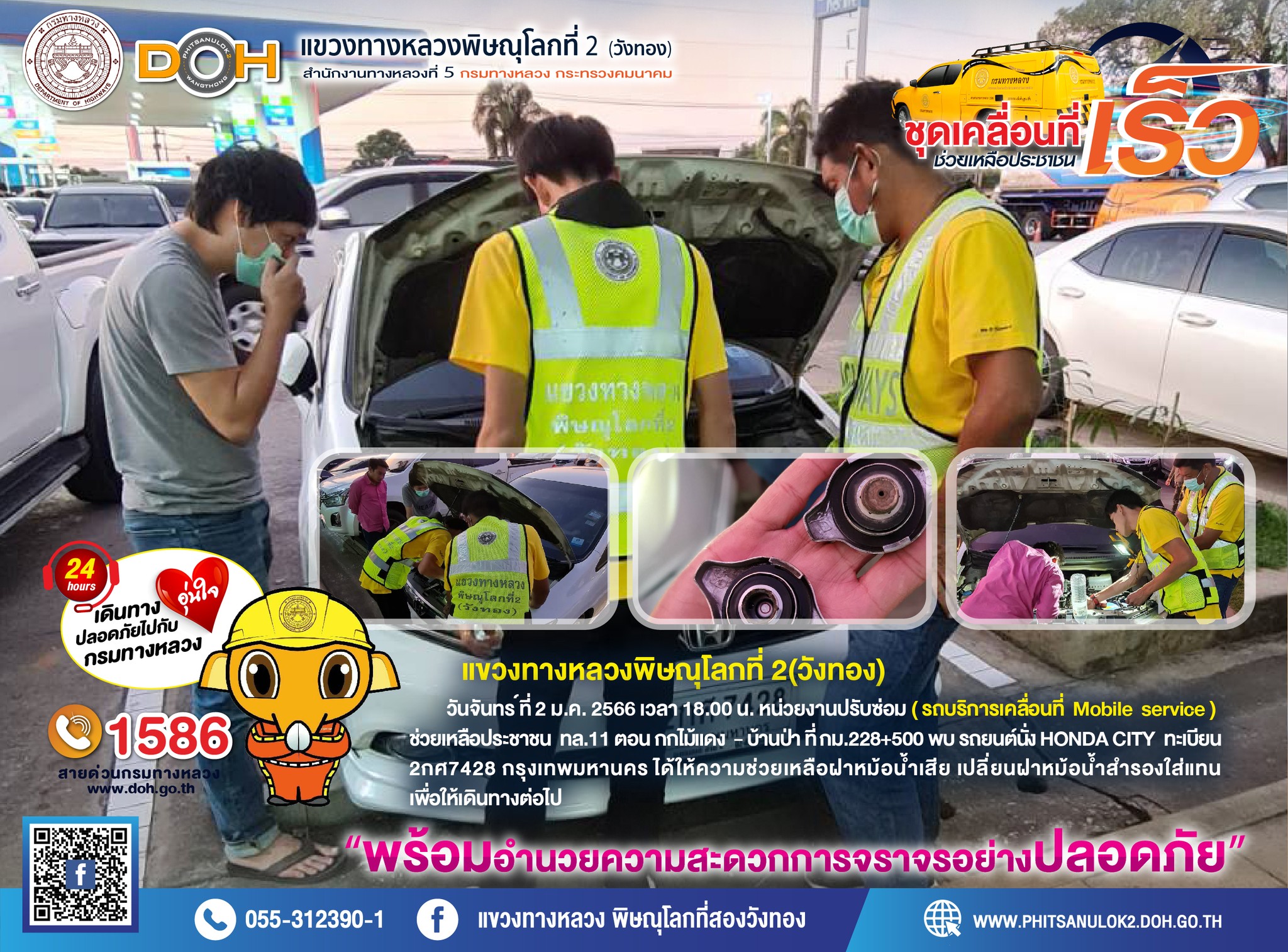 บริการประชาชนช่วงเทศกาลปีใหม่ 2562 แขวงทางหลวงพิษณุโลกที่ 2(วังทอง)