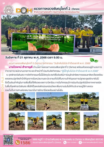 แขวงทางหลวงพิษณุโลกที่ 2 (วังทอง) จัดกิจกรรม “วันรักต้นไม้ประจำปีของชาติ พ.ศ. 2568” |