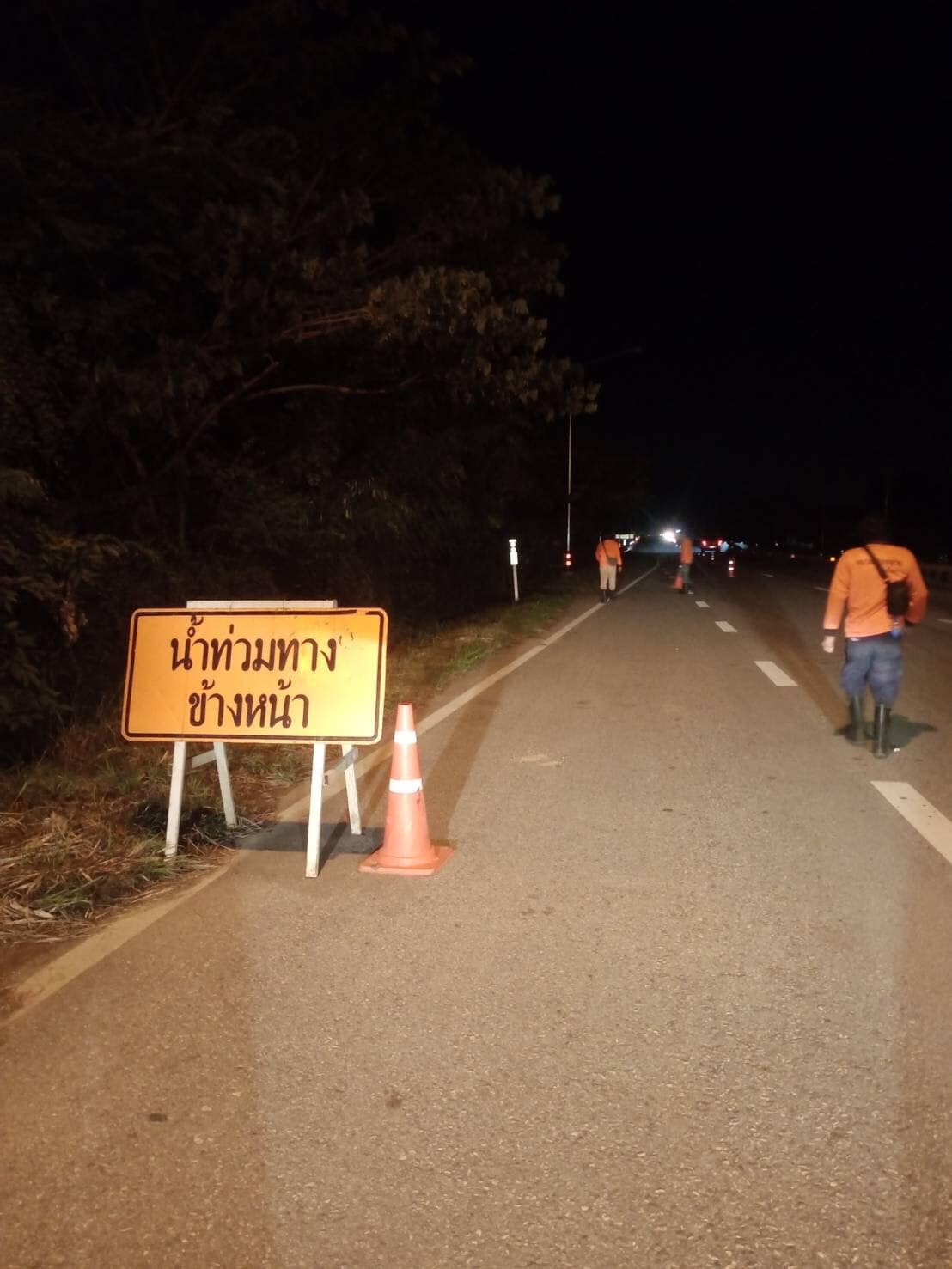 เนื่องจากมีน้ำเอ่อล้นจากแม่น้ำวังทองไหลหลาก เข้าท่วมถนนบริเวณดังกล่าว เมื่อวานนี้ สภาพทางในปัจจุบันน้ำได้ลดลงพ้นผิวทาง การจราจรผ่านได้เป็นปกติ