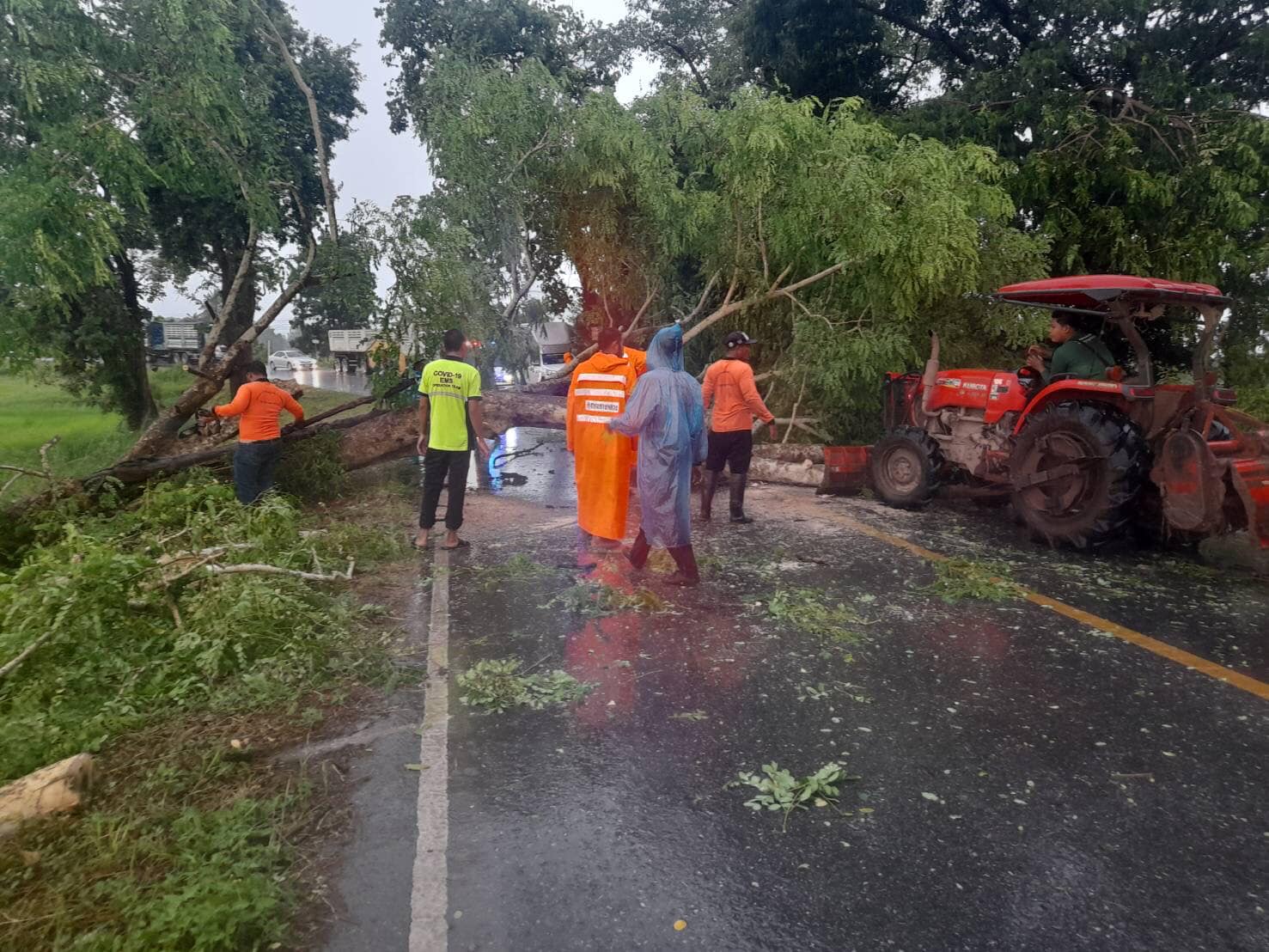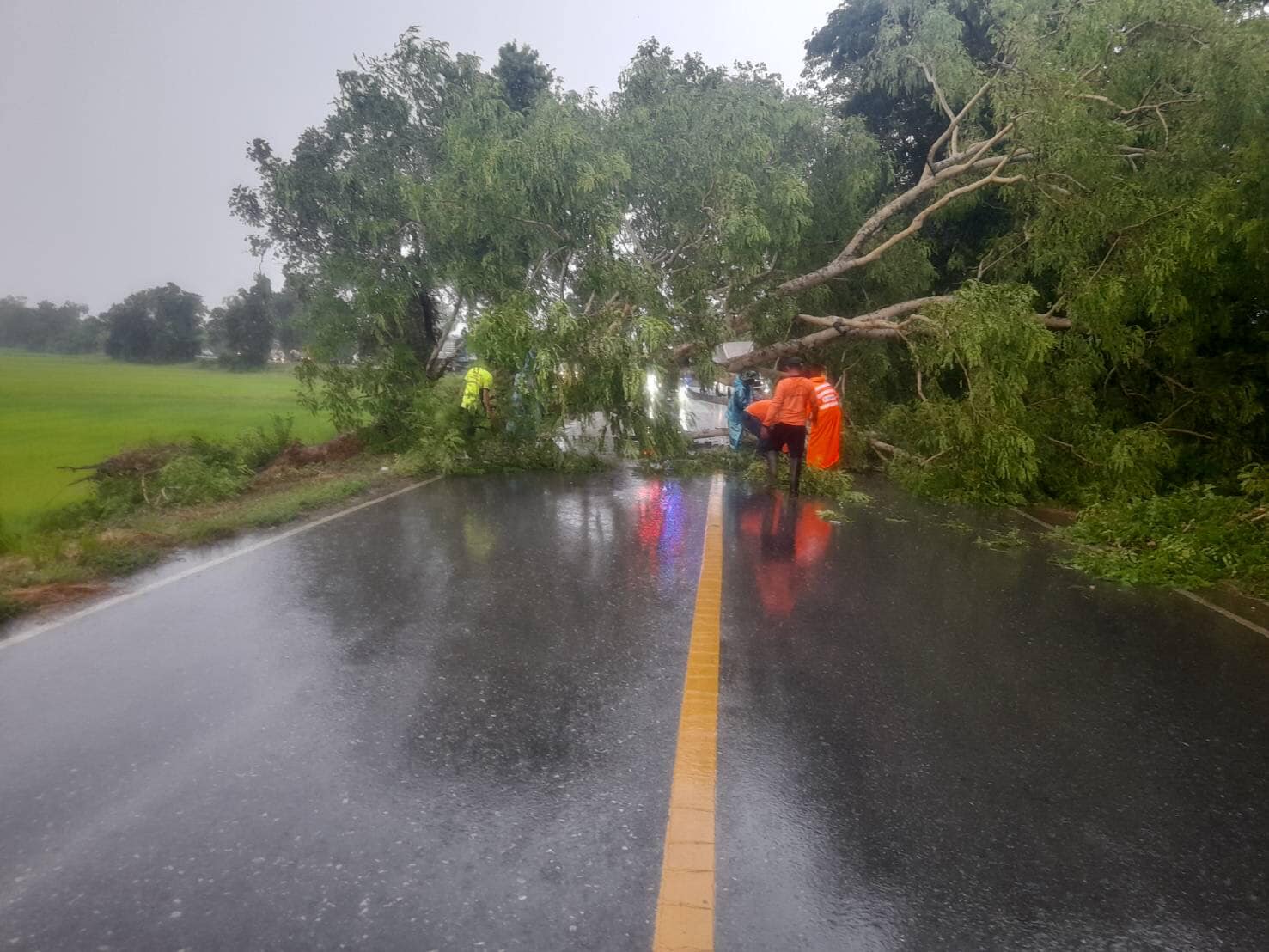 ฝนตกหนักลมกรรโชกแรงเป็นเหตุให้ต้นไม้ล้มทับทาง บริเวณ ทางหลวงหมายเลข 1086 ตอน มะขามสูง - วัดโบสถ์ ที่ กม.18+500