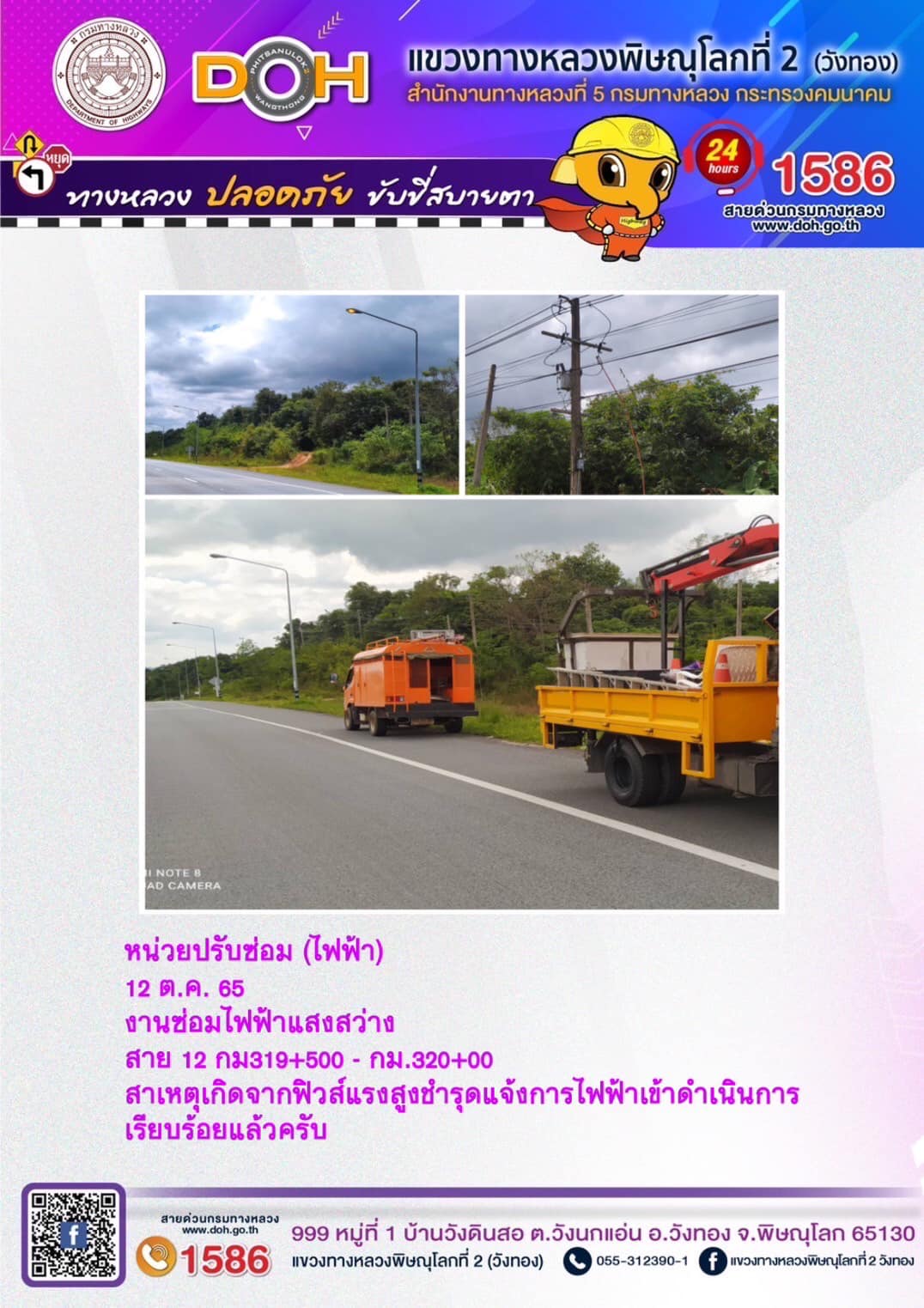 ข้อมูลข่าว : ปฏิบัติงานเพื่ออำนวยความสะดวก และความปลอดภัยของผู้ใช้เส้นทาง ประจำ วันพุธที่ 12 ตุลาคม 2565