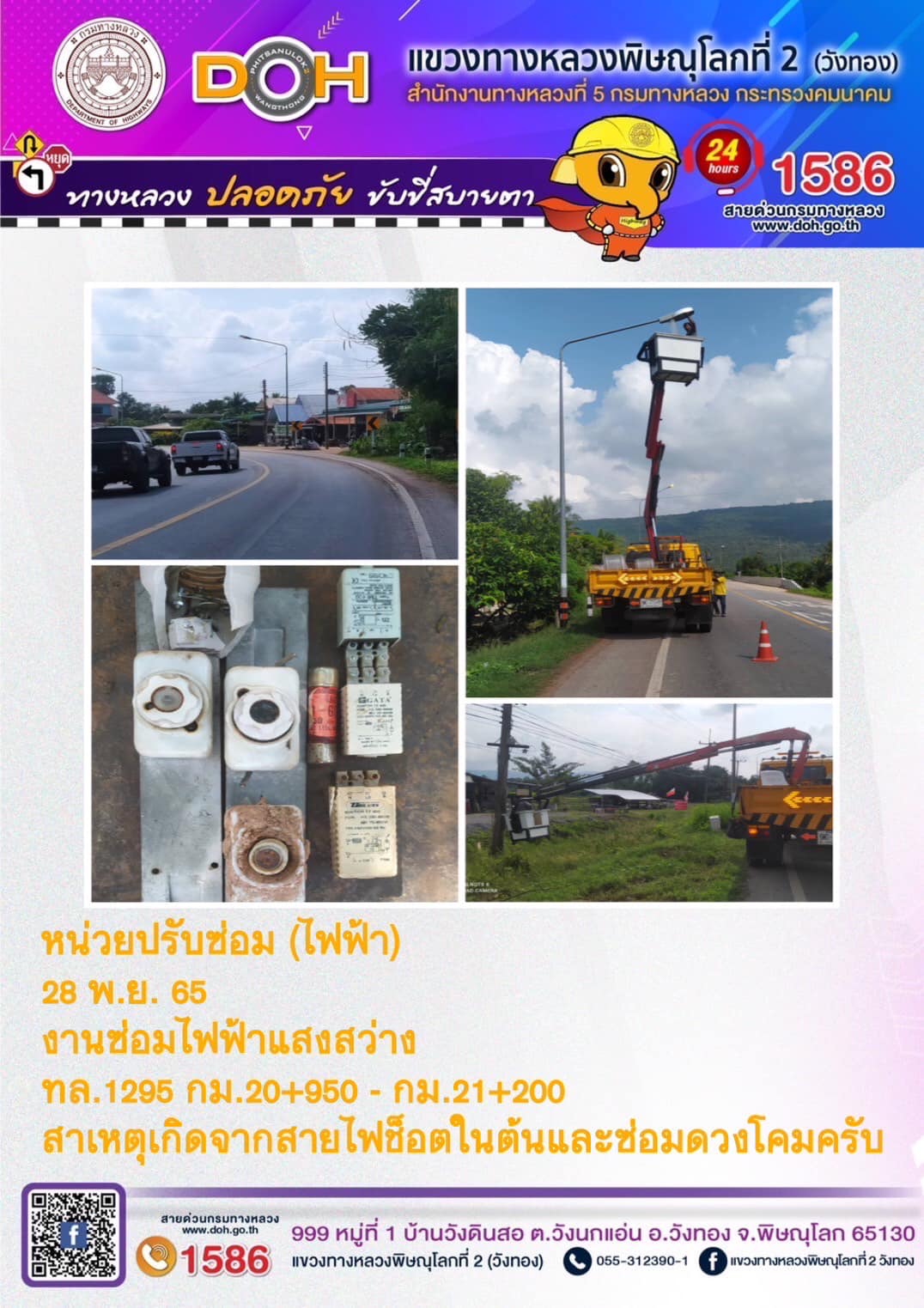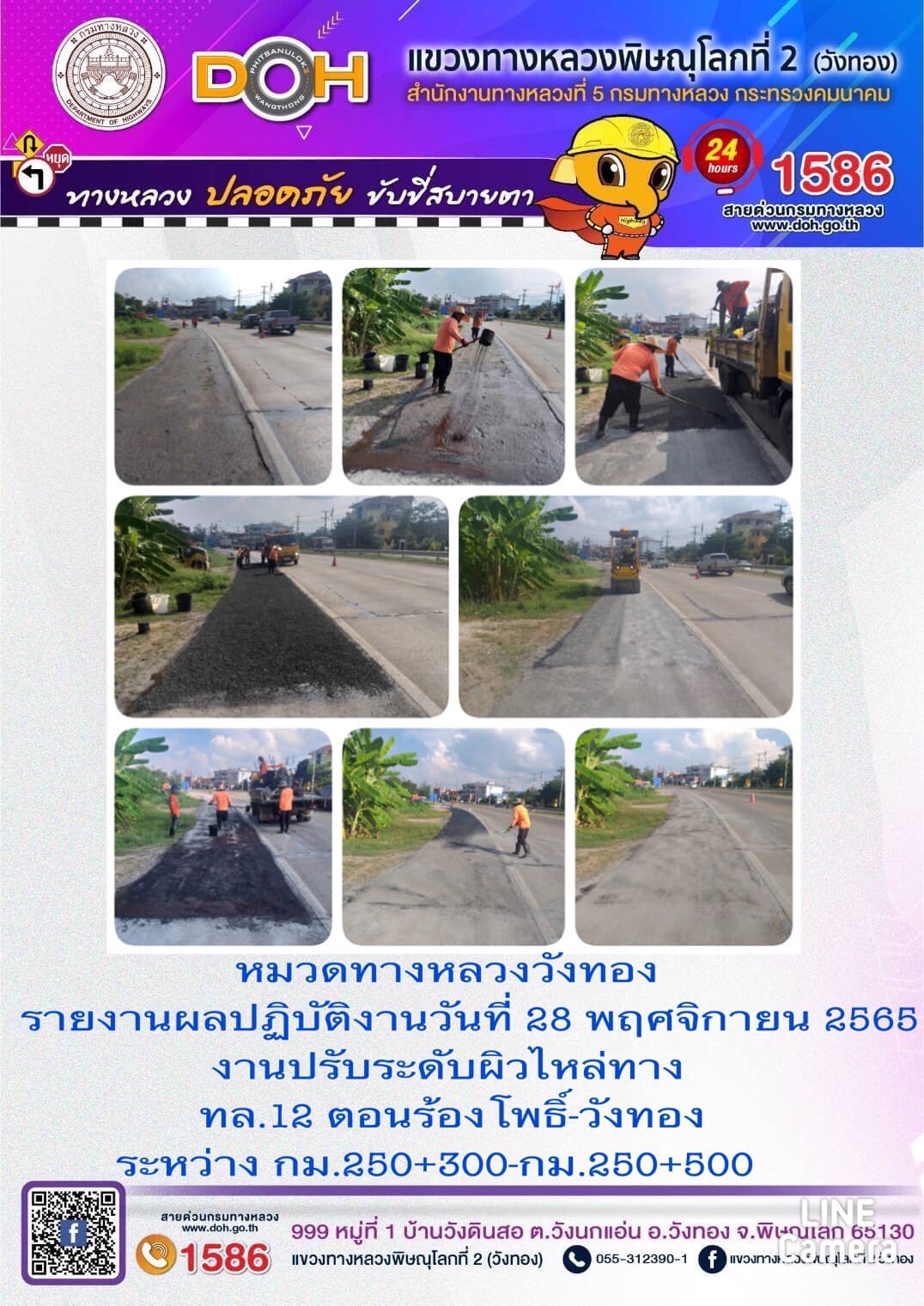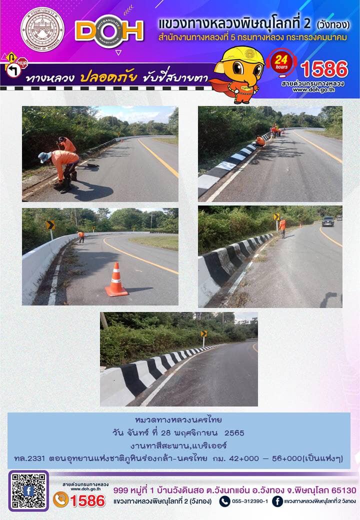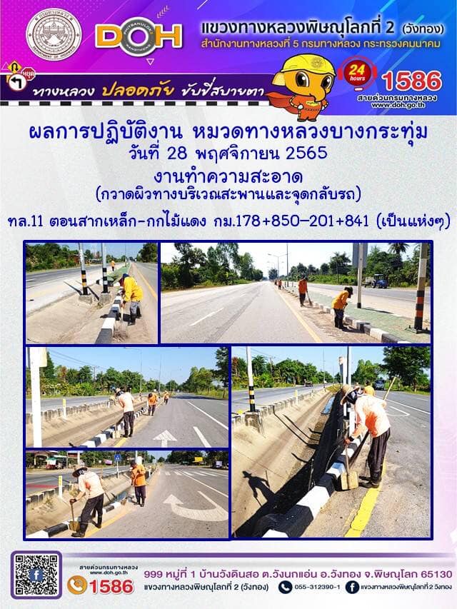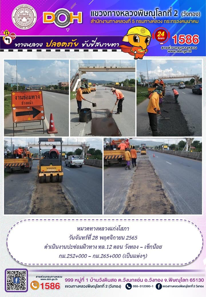 การปฏิบัติงานของ หมวดทางหลวง และ หน่วยงานในสังกัด เพื่ออำนวยความสะดวก และปลอดภัยให้กับประชาชนผู้ใช้เส้นทาง ประจำ วันจันทร์ที่ 28 พฤศจิกายน 2565