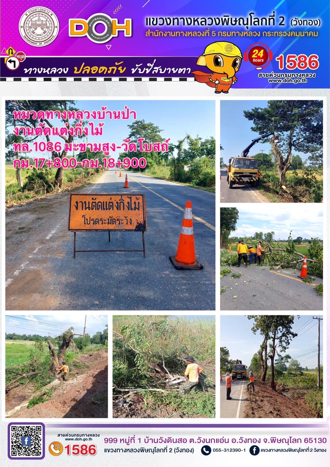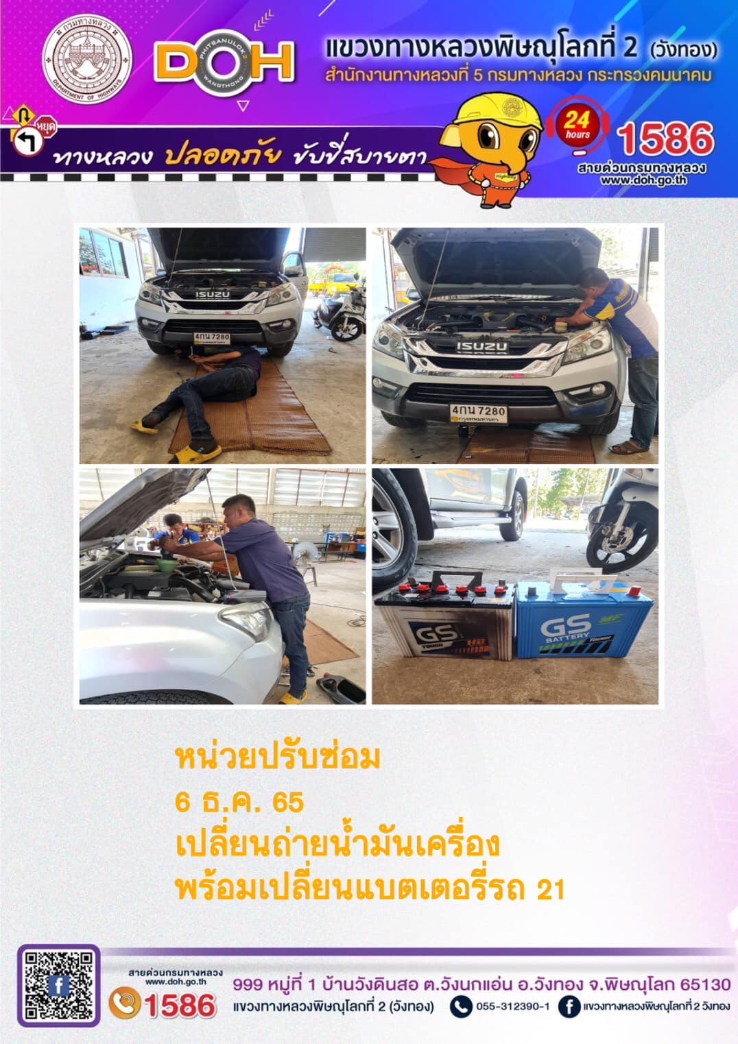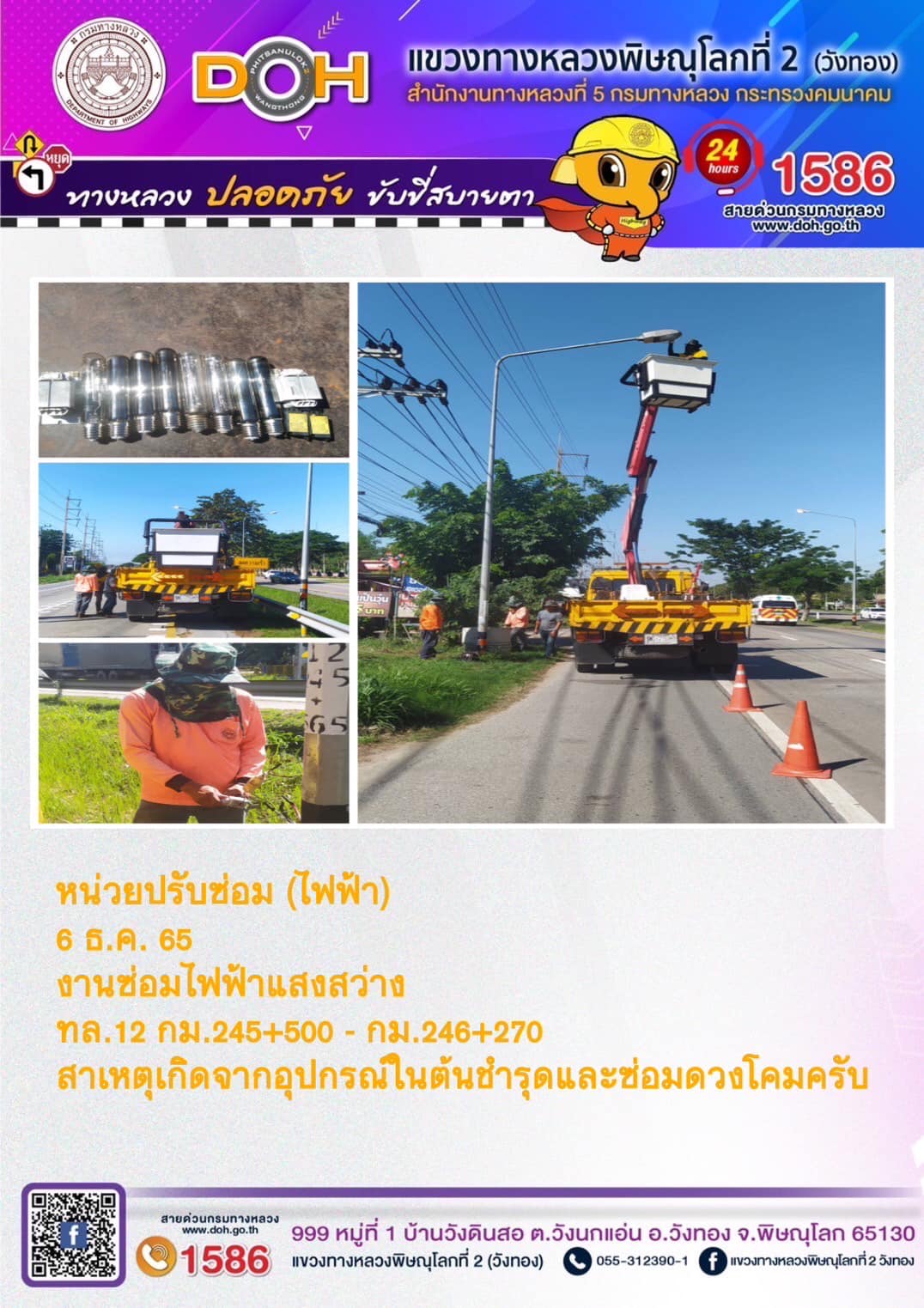 การปฏิบัติงานของ หมวดทางหลวง และ หน่วยงานในสังกัด เพื่ออำนวยความสะดวก และปลอดภัยให้กับประชาชนผู้ใช้เส้นทาง ประจำ วันอังคารที่ 6 ธันวาคม 2565