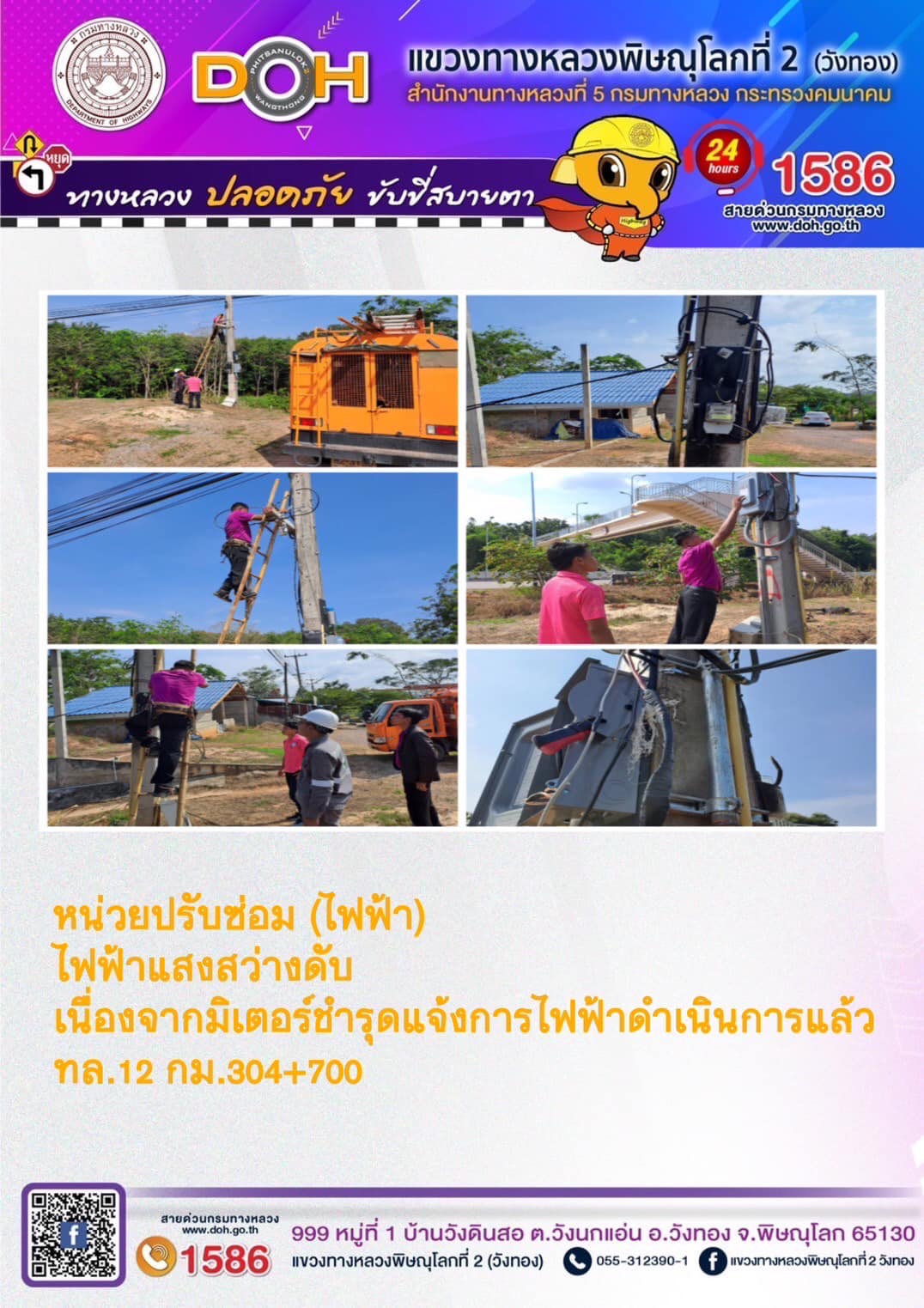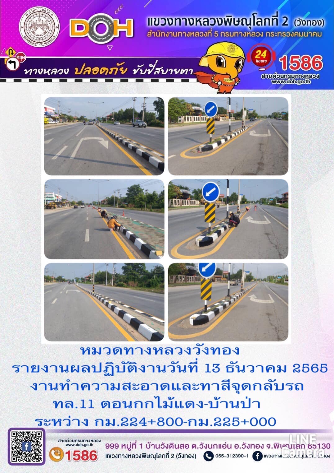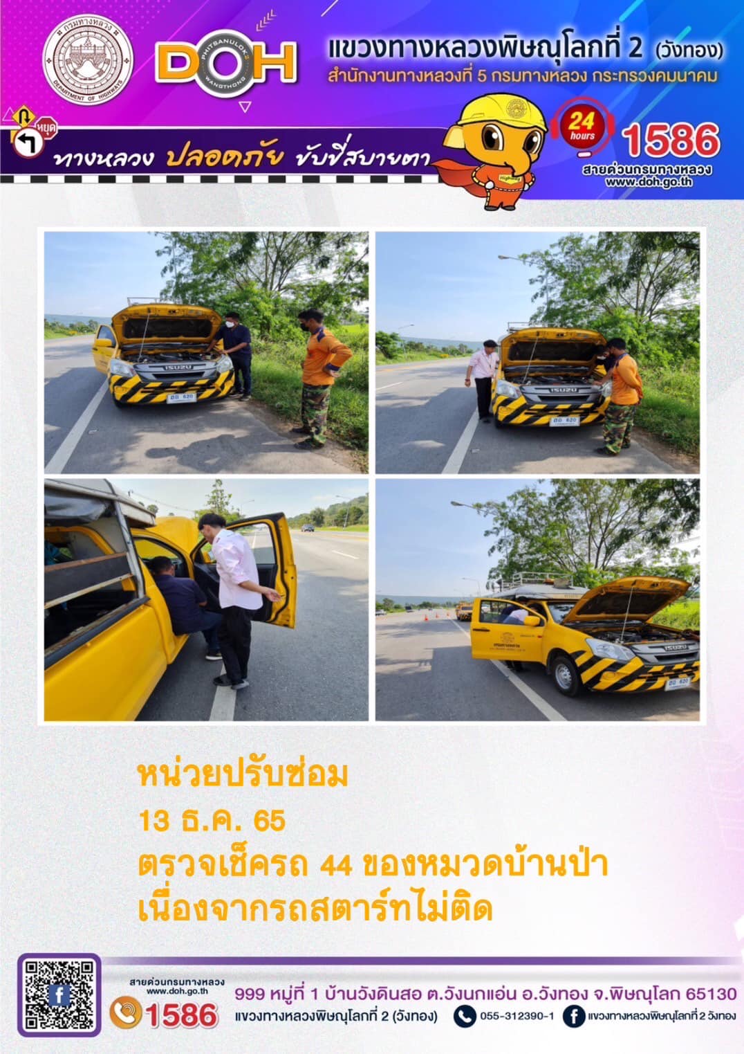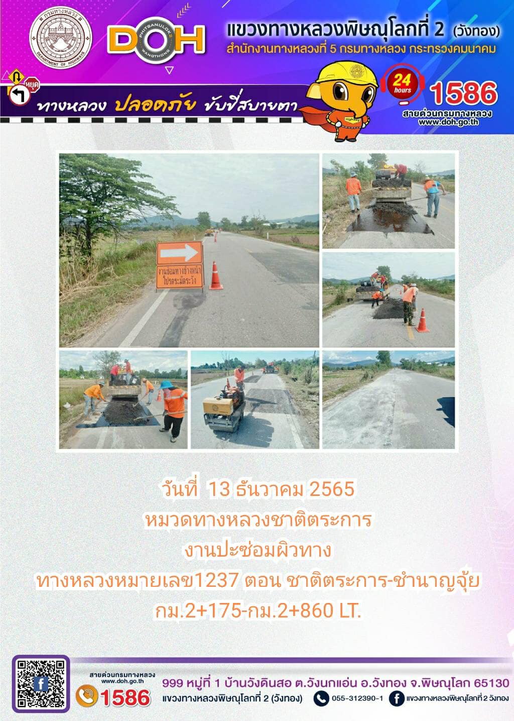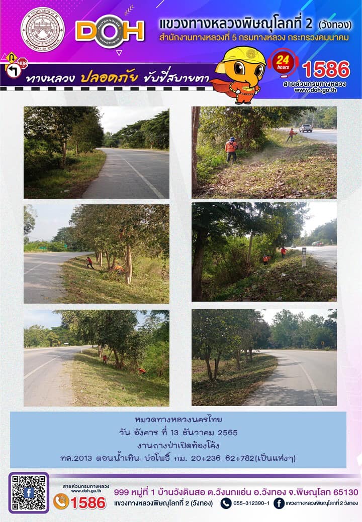การปฏิบัติงานของ หมวดทางหลวง และ หน่วยงานในสังกัด เพื่ออำนวยความสะดวก และปลอดภัยให้กับประชาชนผู้ใช้เส้นทาง ประจำ วันอังคารที่ 13 ธันวาคม 2565