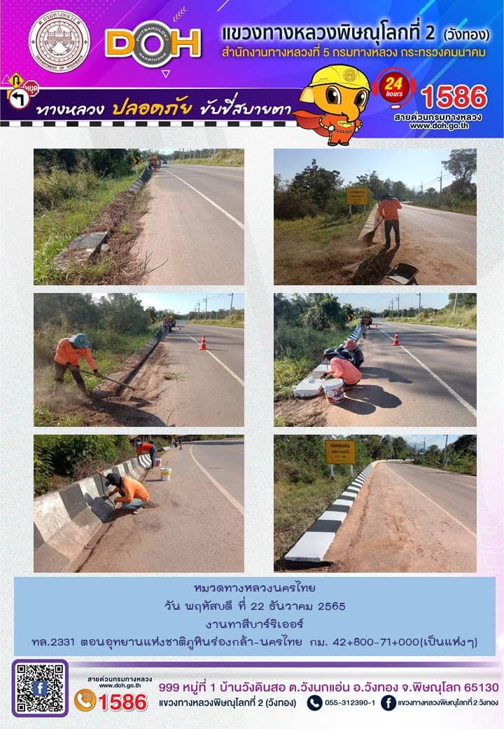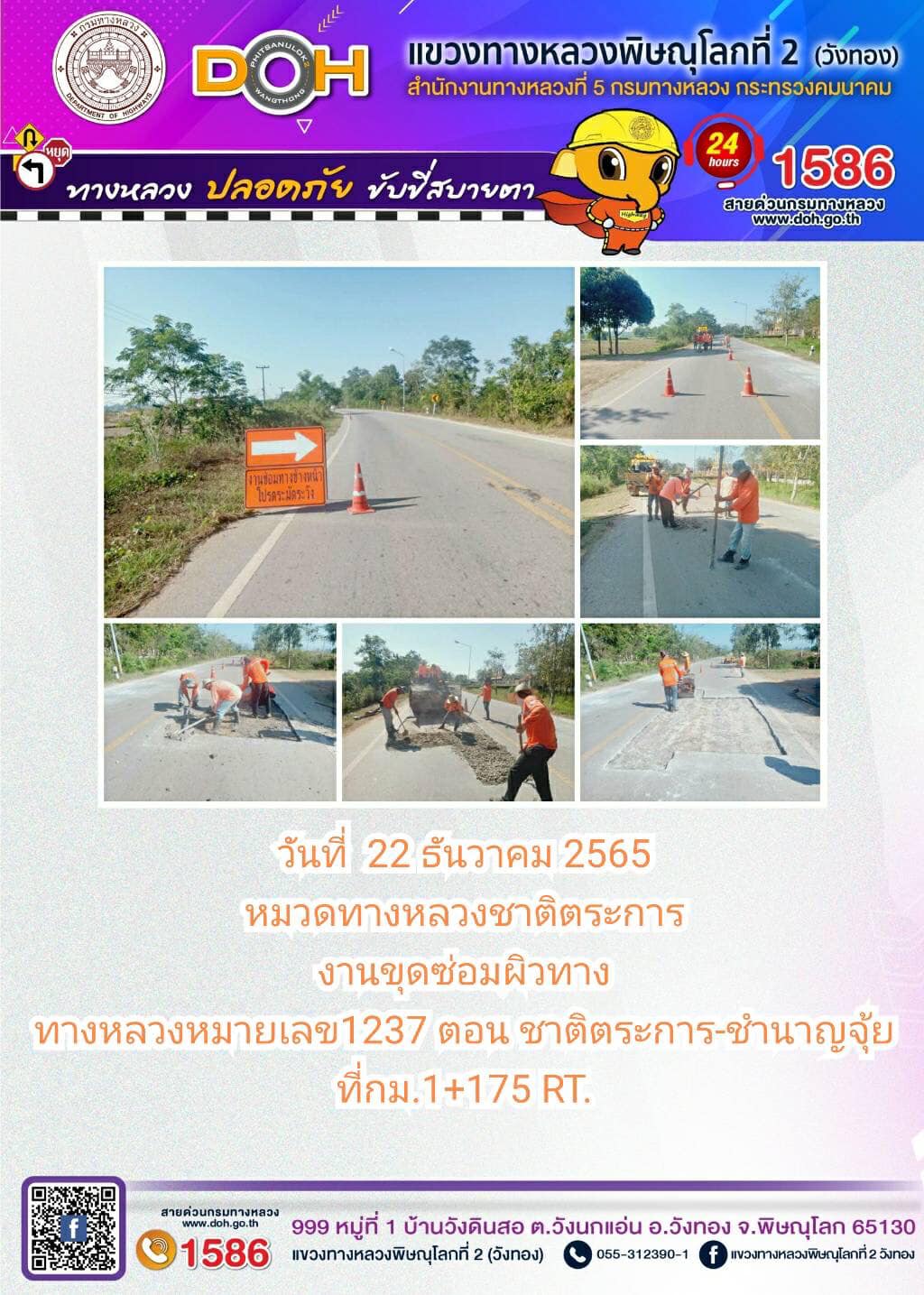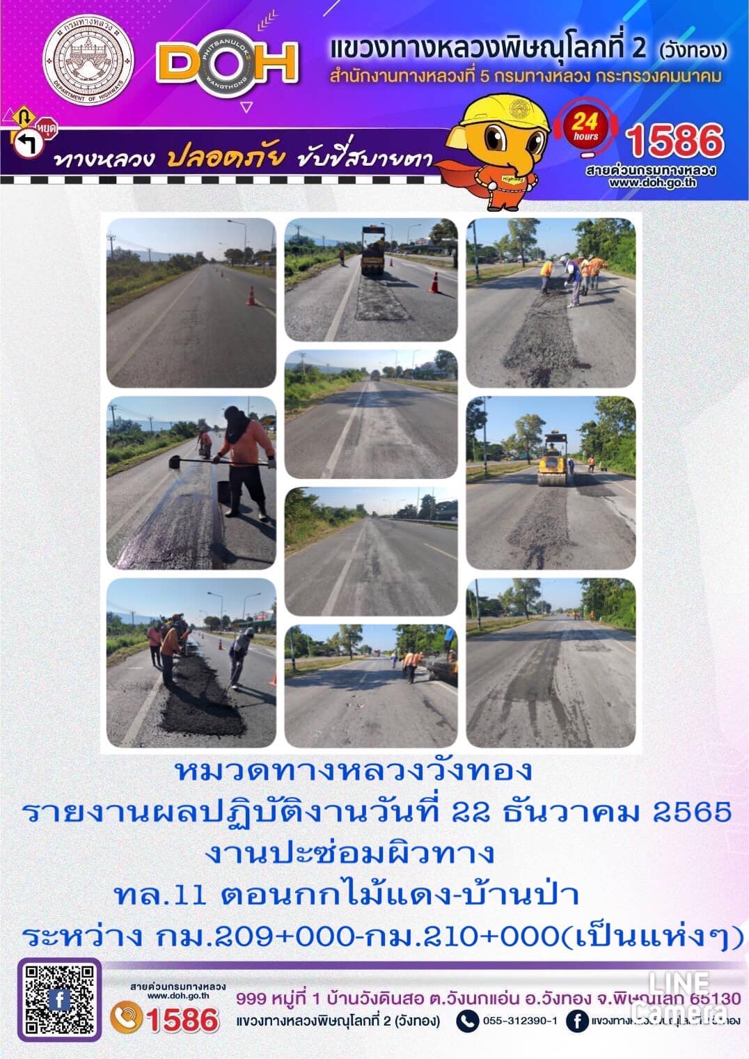 การปฏิบัติงานของ หมวดทางหลวง และ หน่วยงานในสังกัด เพื่ออำนวยความสะดวก และปลอดภัยให้กับประชาชนผู้ใช้เส้นทาง ประจำ วันพฤหัสบดีที่ 22 ธันวาคม 2565