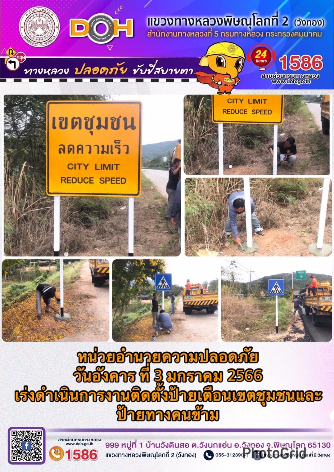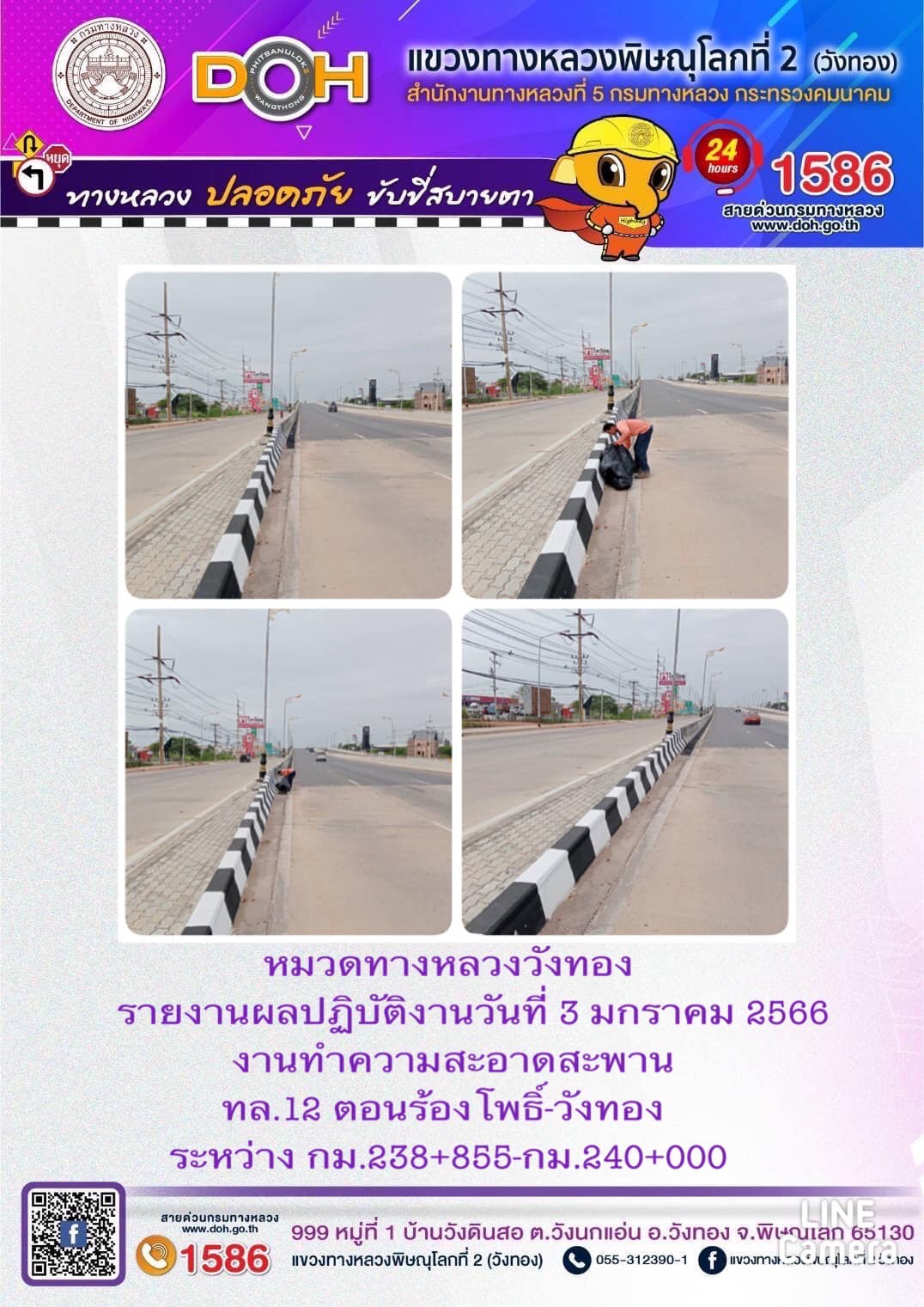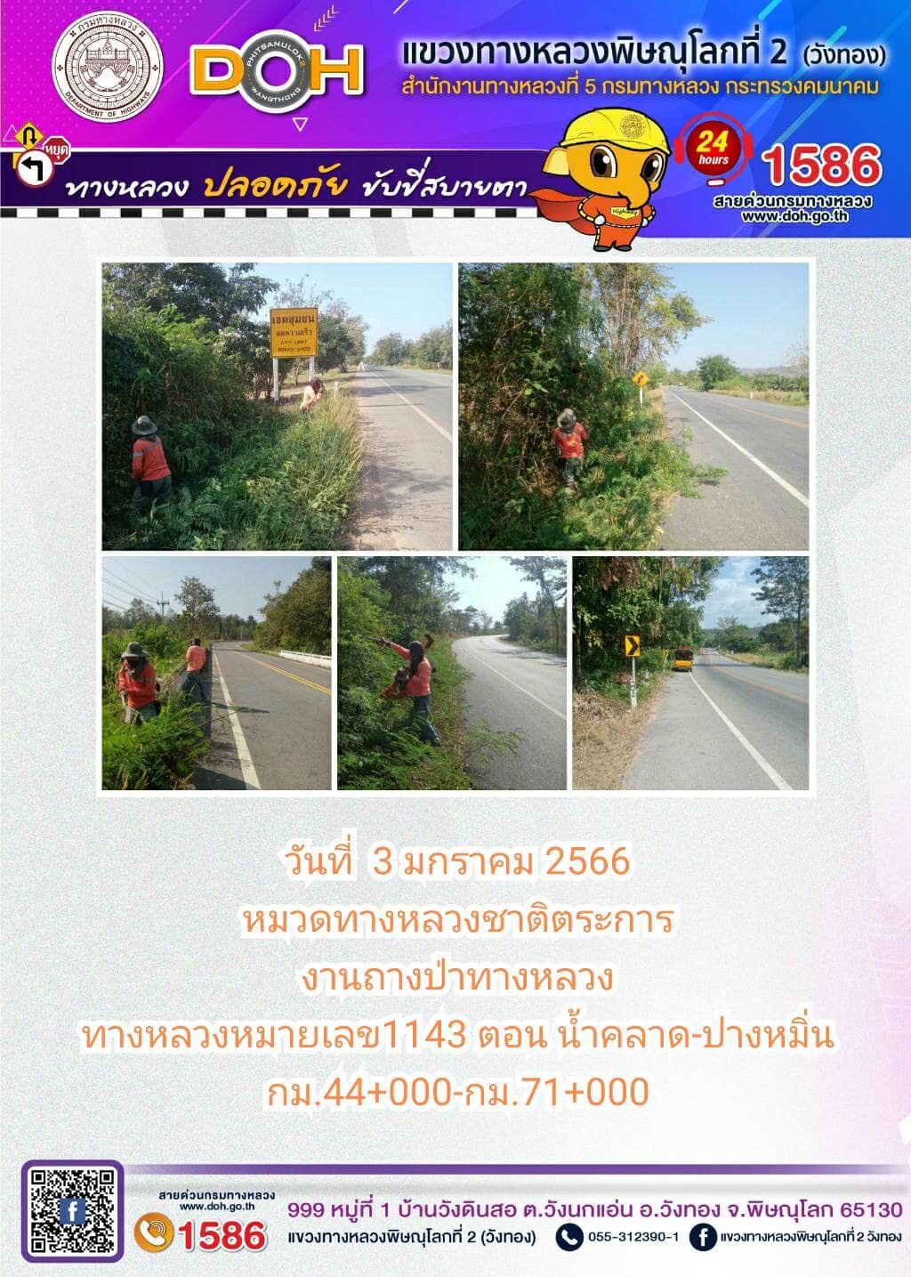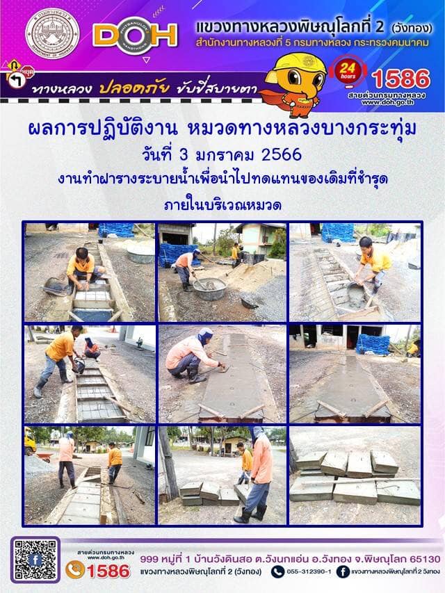 การปฏิบัติงานของ หมวดทางหลวง และ หน่วยงานในสังกัด เพื่ออำนวยความสะดวก และปลอดภัยให้กับประชาชนผู้ใช้เส้นทาง ประจำ วันอังคารที่ 3 มกราคม 2566