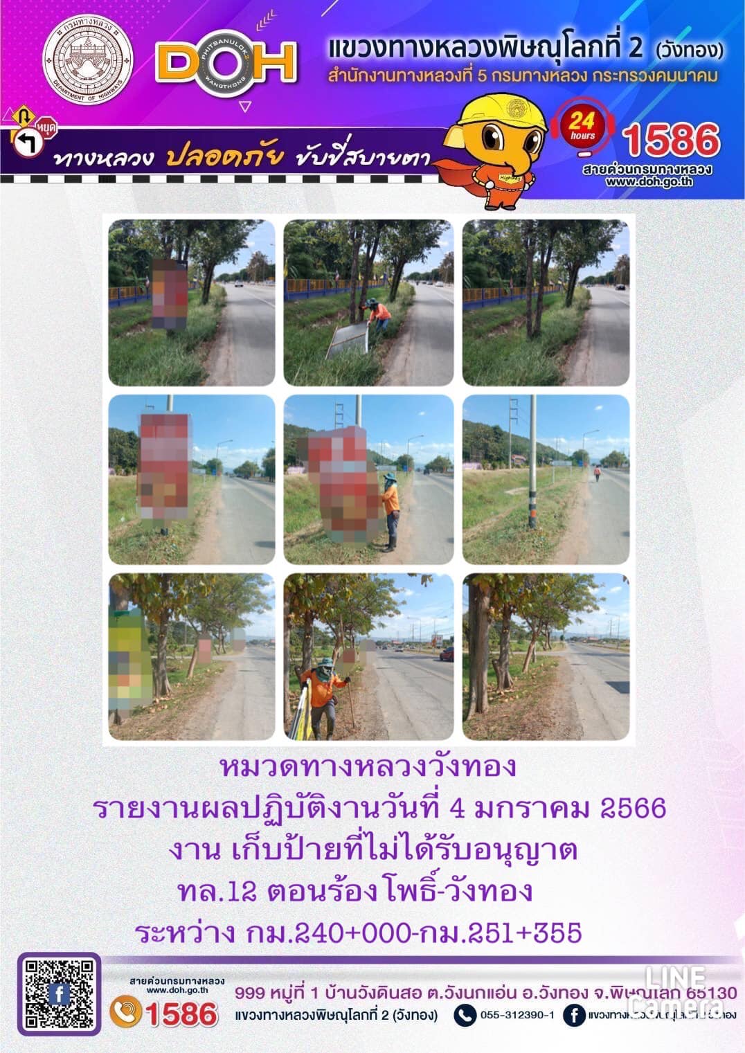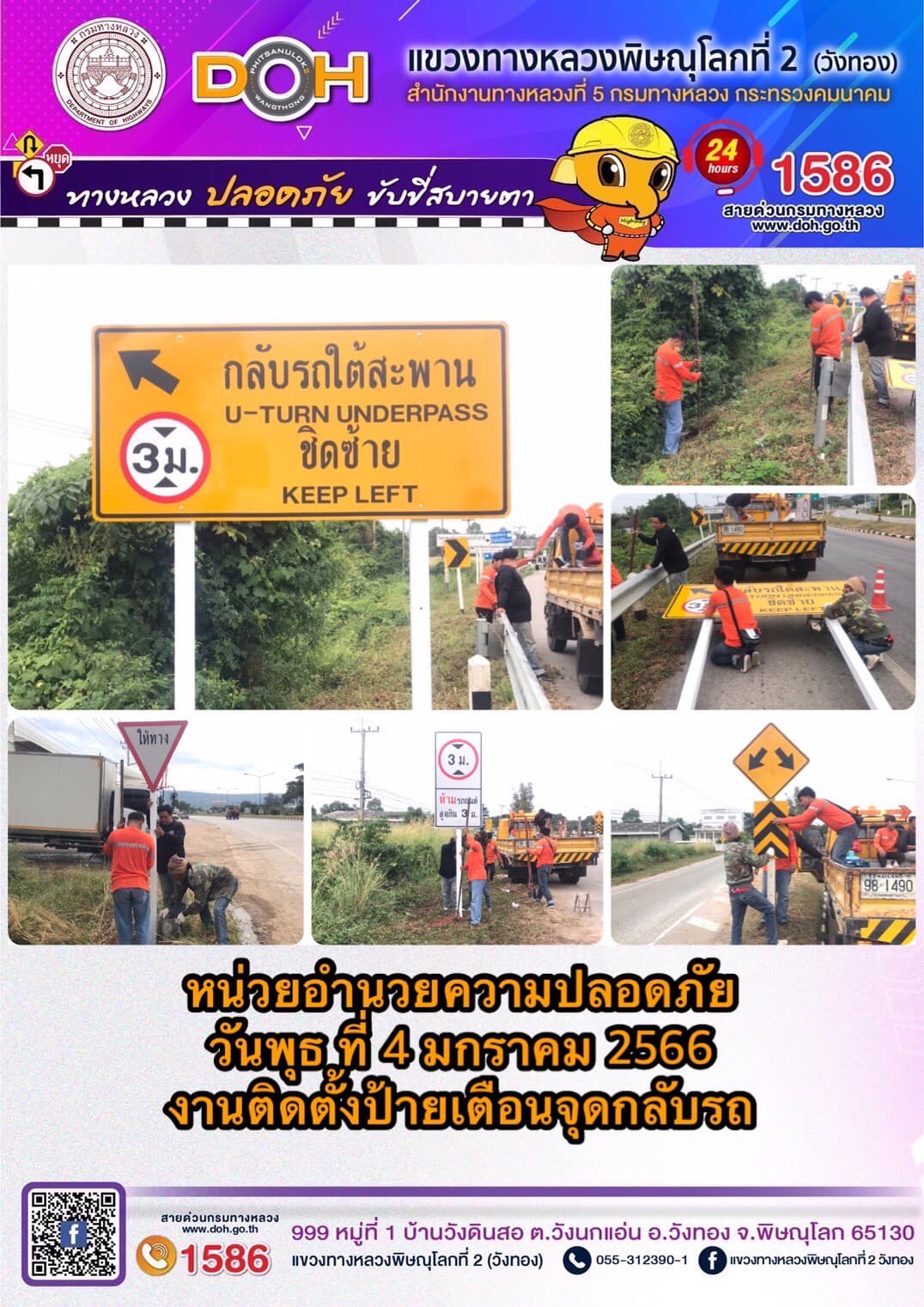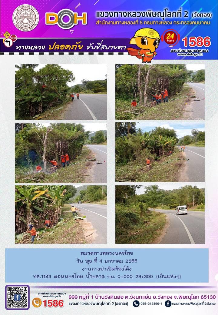 การปฏิบัติงานของ หมวดทางหลวง และ หน่วยงานในสังกัด เพื่ออำนวยความสะดวก และปลอดภัยให้กับประชาชนผู้ใช้เส้นทาง ประจำ วันพุธที่ 4 มกราคม 2566