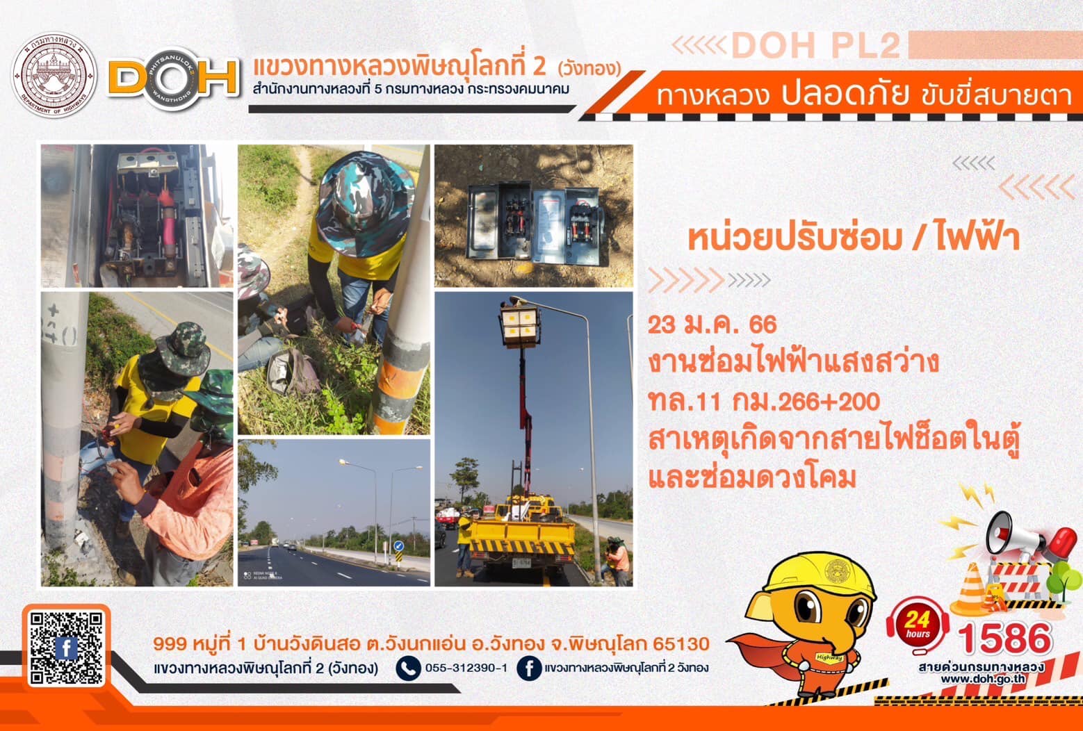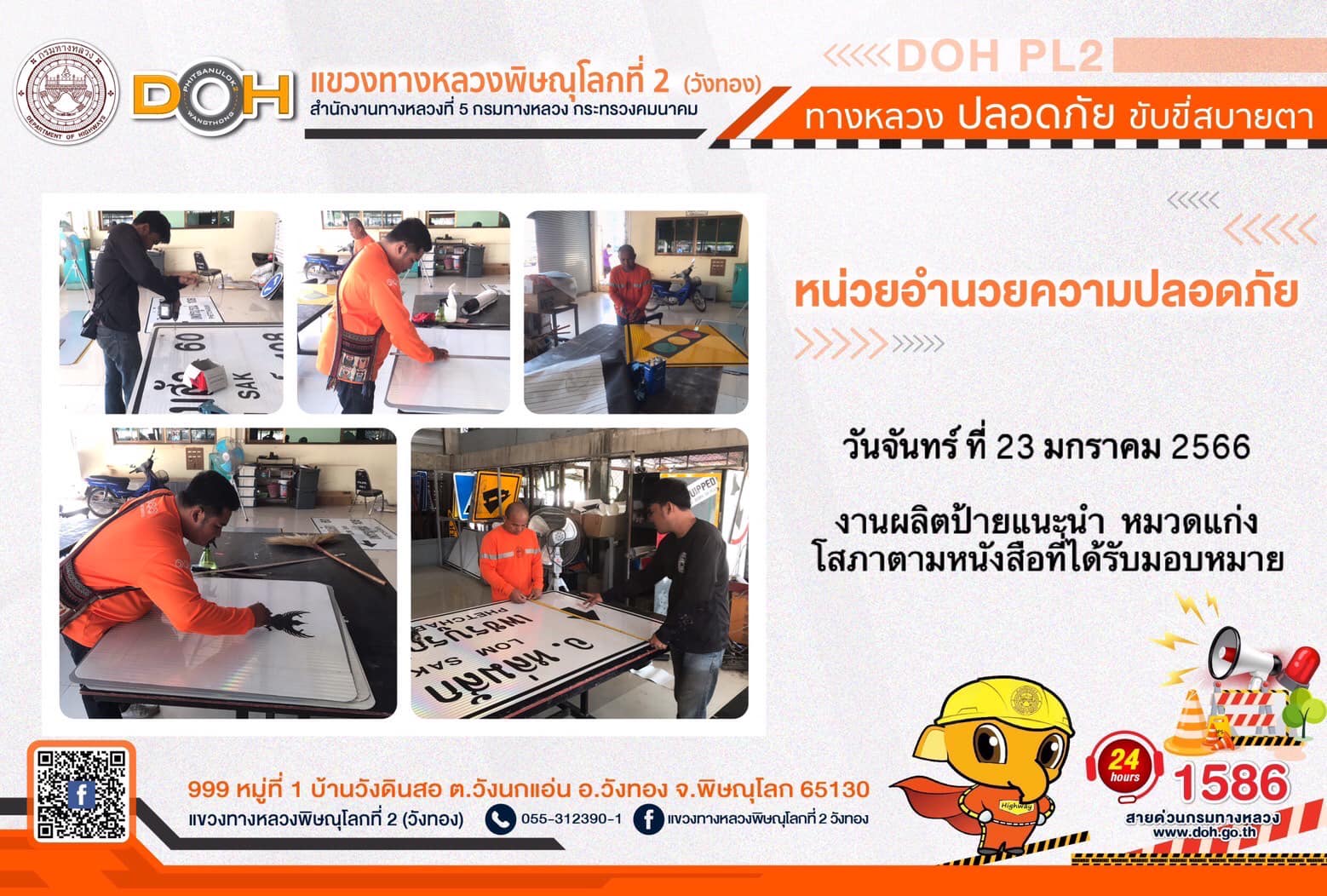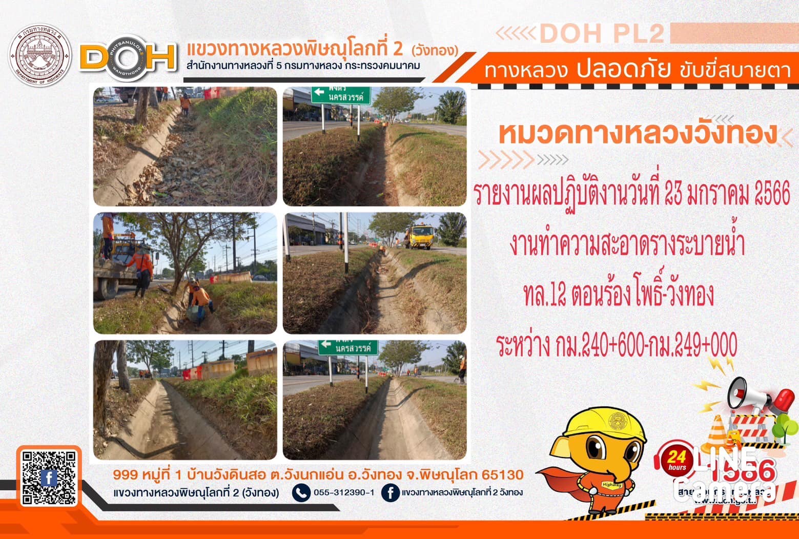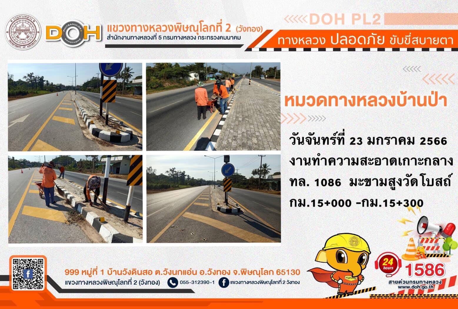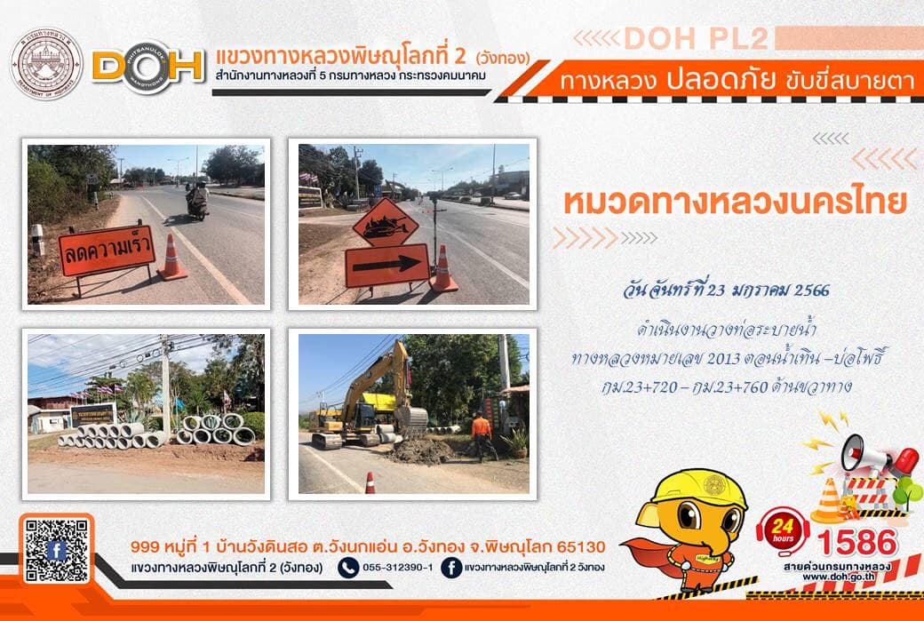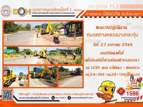 การปฏิบัติงานของ หมวดทางหลวง และ หน่วยงานในสังกัด เพื่ออำนวยความสะดวก และปลอดภัยให้กับประชาชนผู้ใช้เส้นทาง ประจำ วันจันทร์ที่ 23 มกราคม 2566