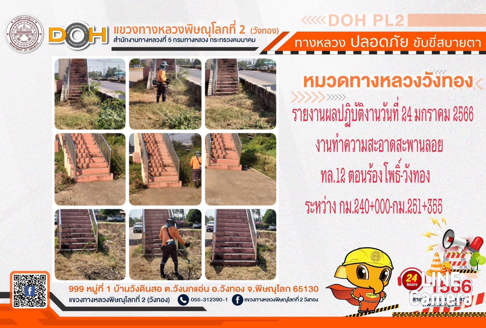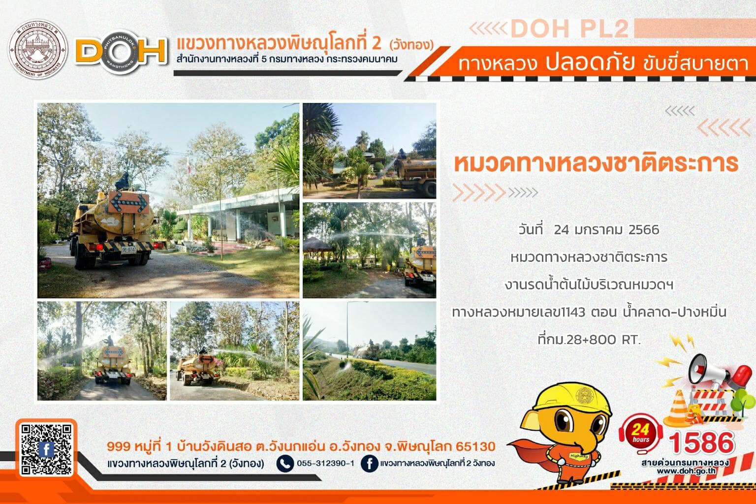 การปฏิบัติงานของ หมวดทางหลวง และ หน่วยงานในสังกัด เพื่ออำนวยความสะดวก และปลอดภัยให้กับประชาชนผู้ใช้เส้นทาง ประจำ วันอังคารที่ 24 มกราคม 2566