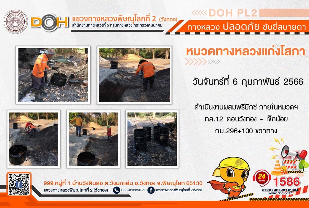 การปฏิบัติงานของ หมวดทางหลวง และ หน่วยงานในสังกัด เพื่ออำนวยความสะดวก และปลอดภัยให้กับประชาชนผู้ใช้เส้นทาง ประจำ วันจันทร์ที่ 6 กุมภาพันธ์ 2566