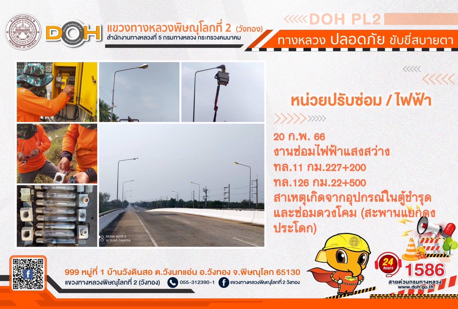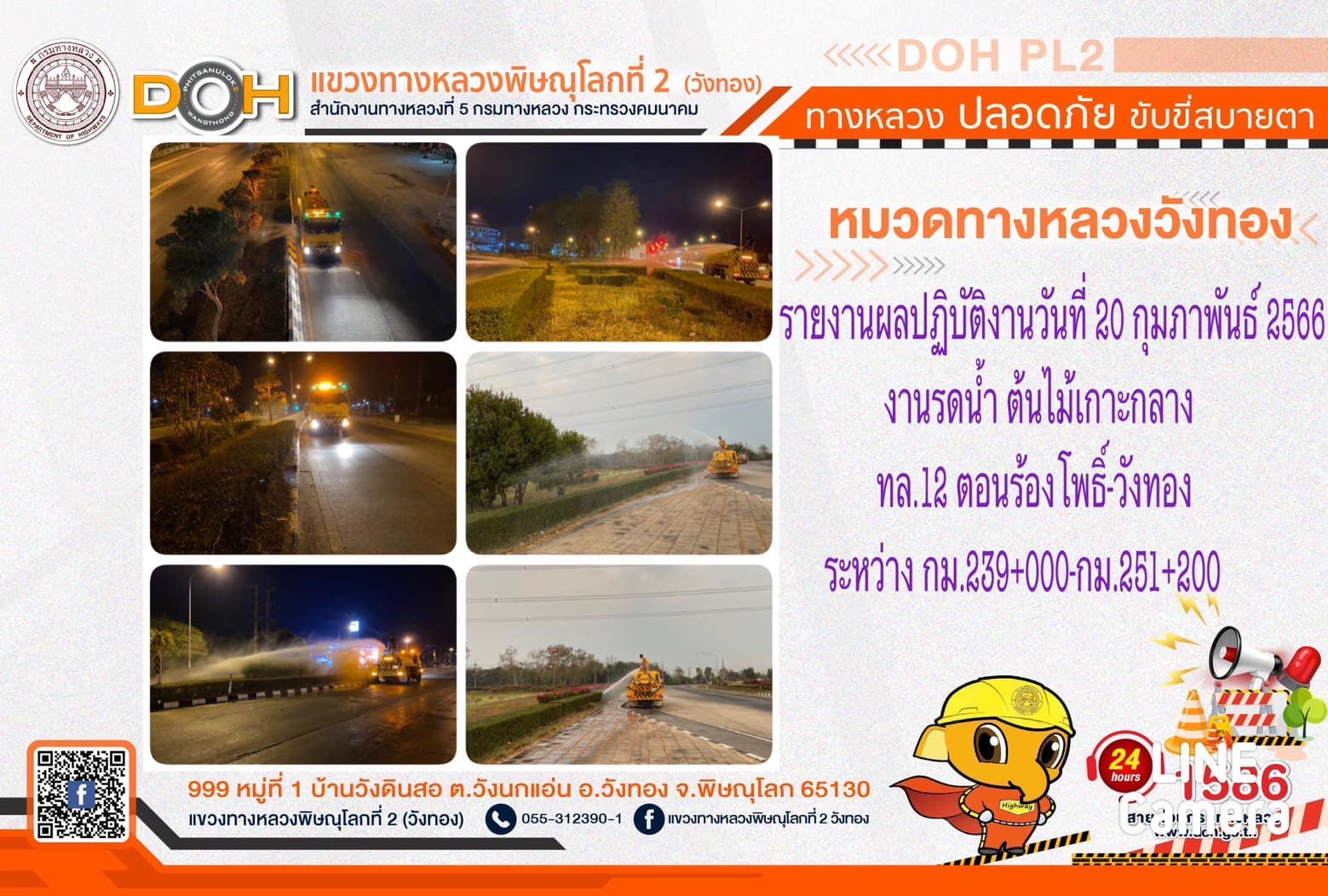 การปฏิบัติงานของ หมวดทางหลวง และ หน่วยงานในสังกัด เพื่ออำนวยความสะดวก และปลอดภัยให้กับประชาชนผู้ใช้เส้นทาง ประจำ วันจันทร์ที่ 20 กุมภาพันธ์ 2566