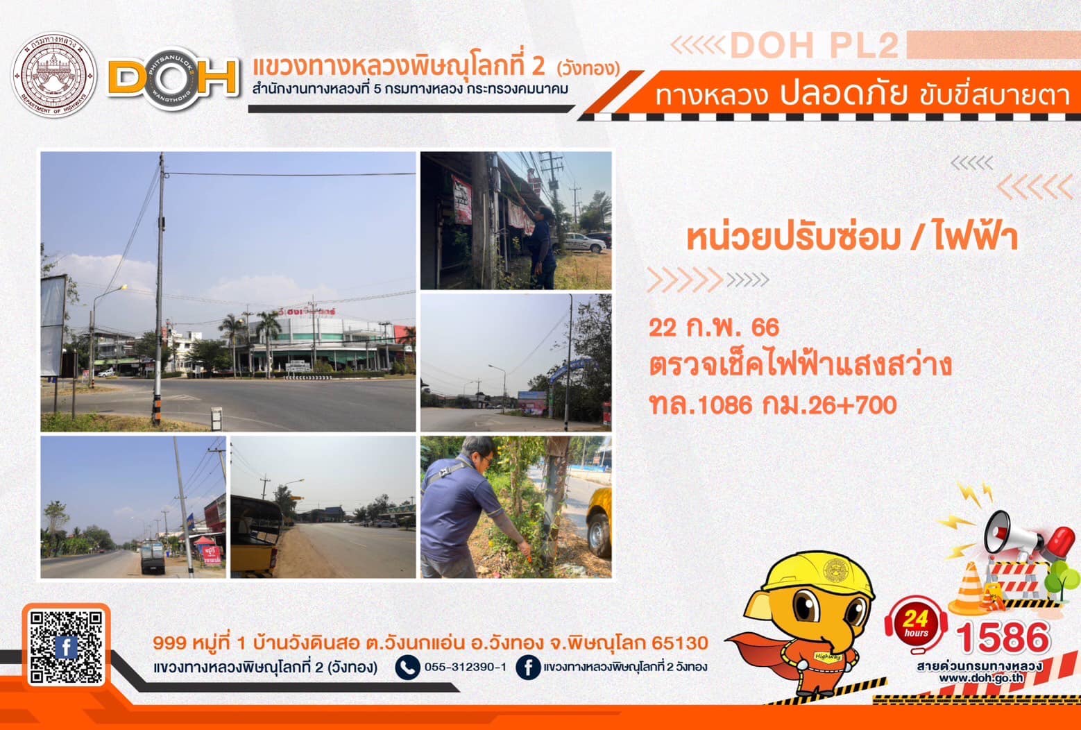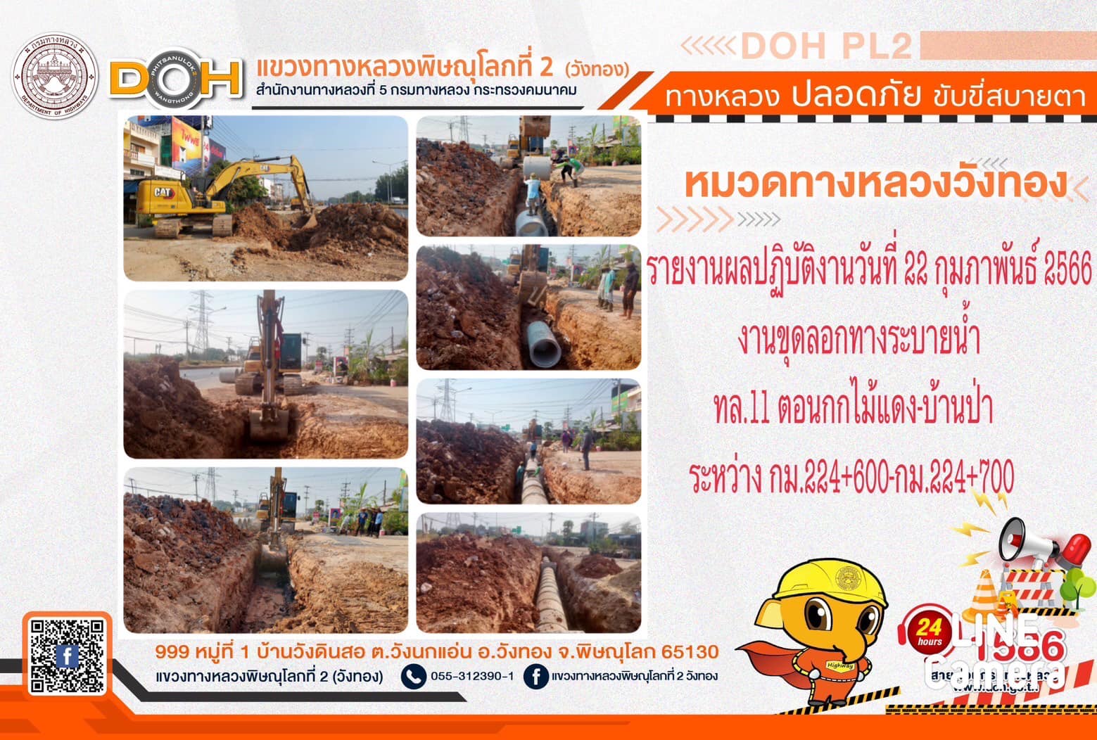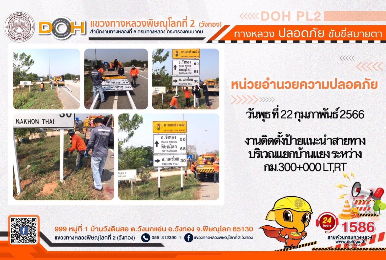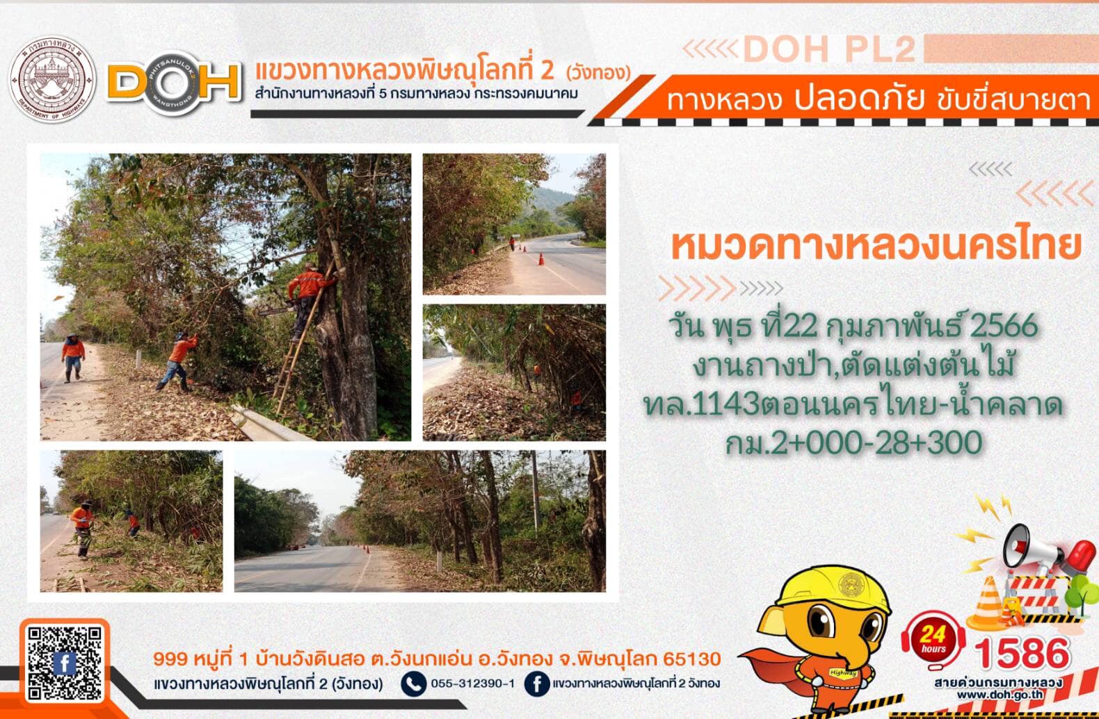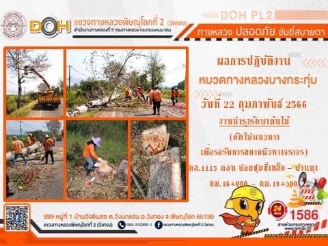 การปฏิบัติงานของ หมวดทางหลวง และ หน่วยงานในสังกัด เพื่ออำนวยความสะดวก และปลอดภัยให้กับประชาชนผู้ใช้เส้นทาง ประจำ วันพุธที่ 22 กุมภาพันธ์ 2566