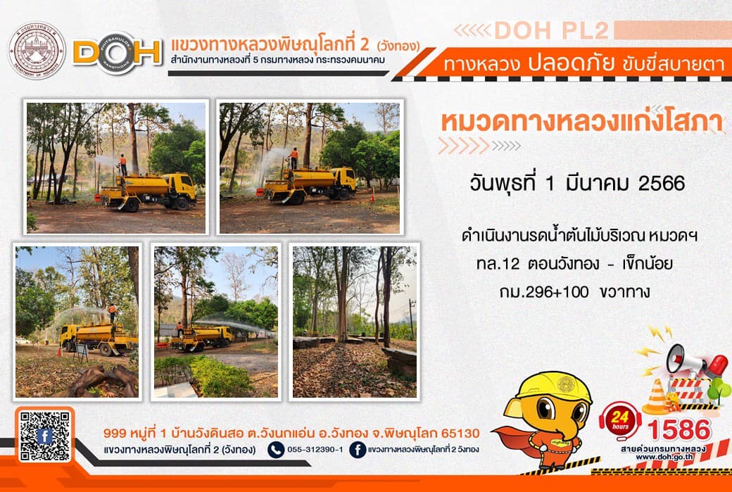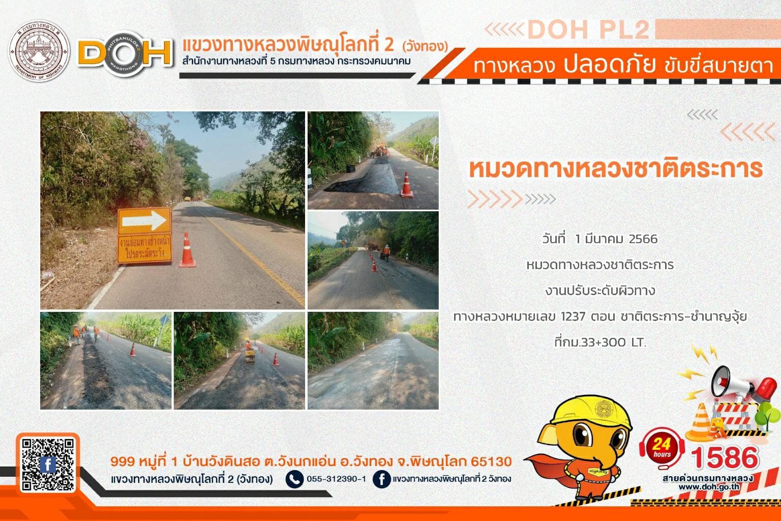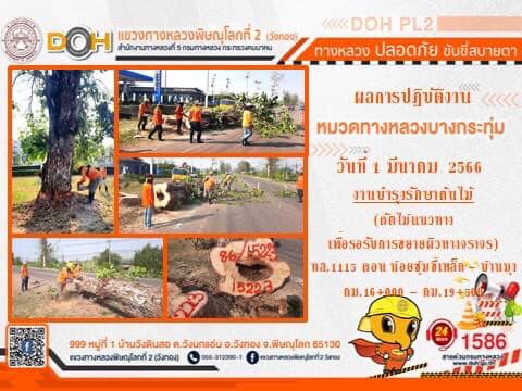 การปฏิบัติงานของ หมวดทางหลวง และ หน่วยงานในสังกัด เพื่ออำนวยความสะดวก และปลอดภัยให้กับประชาชนผู้ใช้เส้นทาง ประจำ วันพุธที่ 1 มีนาคม 2566