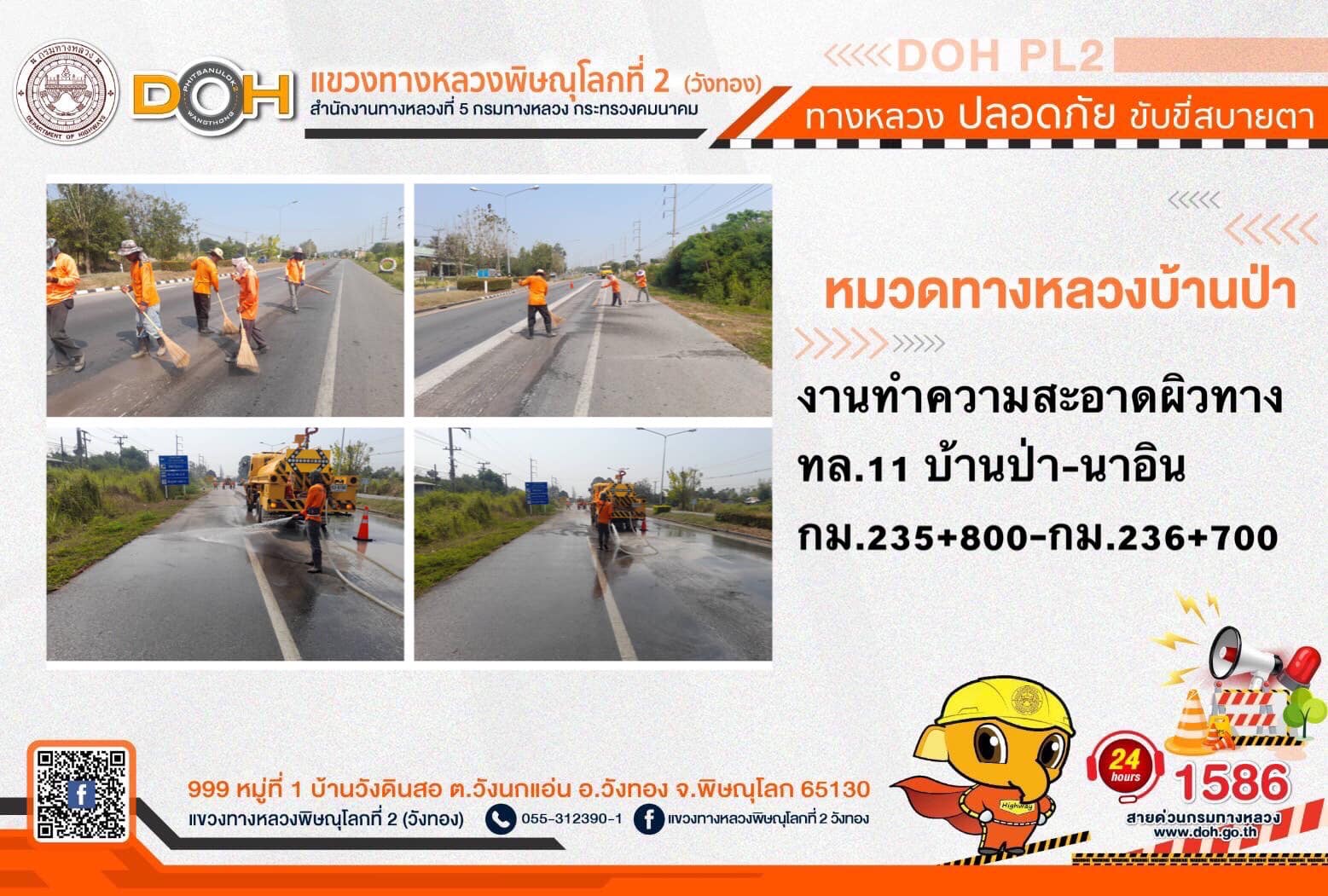การปฏิบัติงานของ หมวดทางหลวง และ หน่วยงานในสังกัด เพื่ออำนวยความสะดวก และปลอดภัยให้กับประชาชนผู้ใช้เส้นทาง ประจำ วันจันทร์ที่ 20 มีนาคม 2566