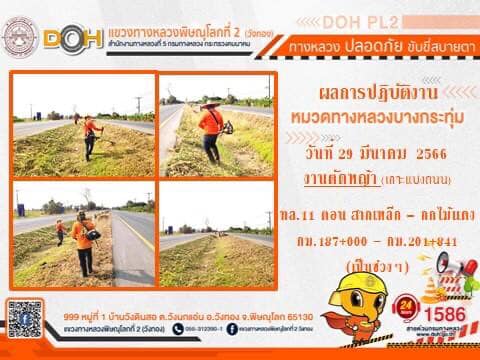 การปฏิบัติงานของ หมวดทางหลวง และ หน่วยงานในสังกัด เพื่ออำนวยความสะดวก และปลอดภัยให้กับประชาชนผู้ใช้เส้นทาง ประจำ วันพุธที่ 29 มีนาคม 2566
