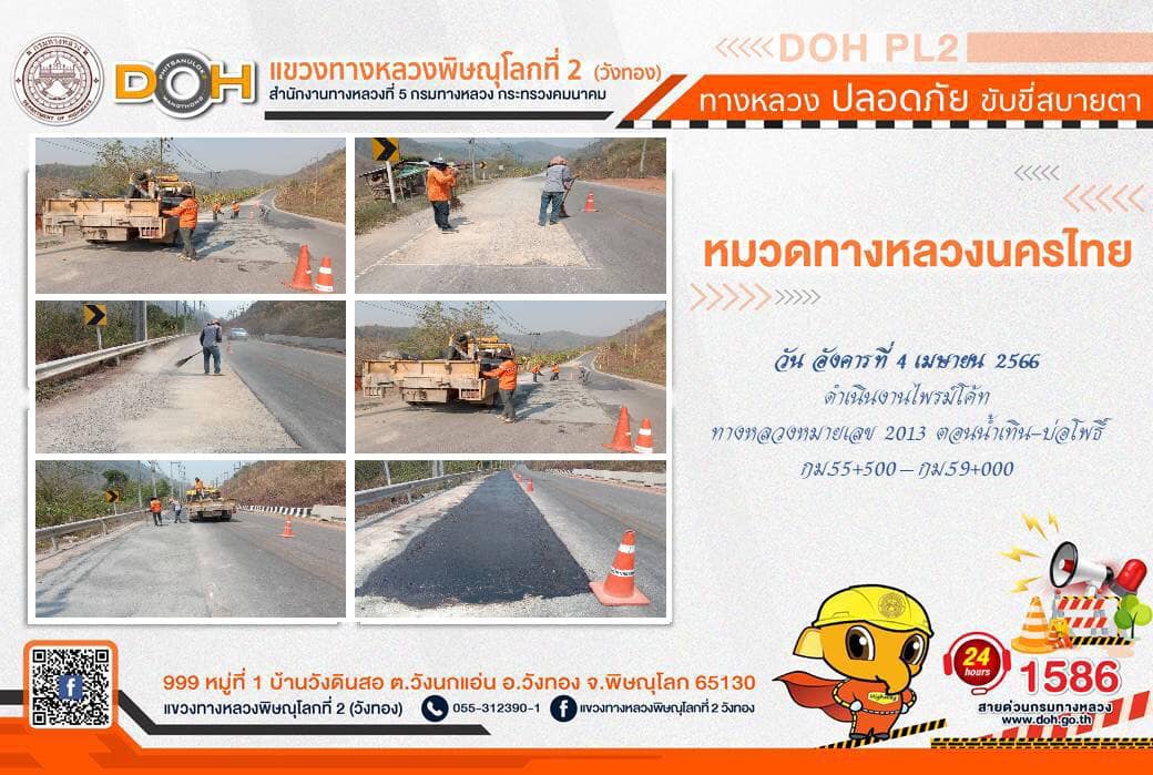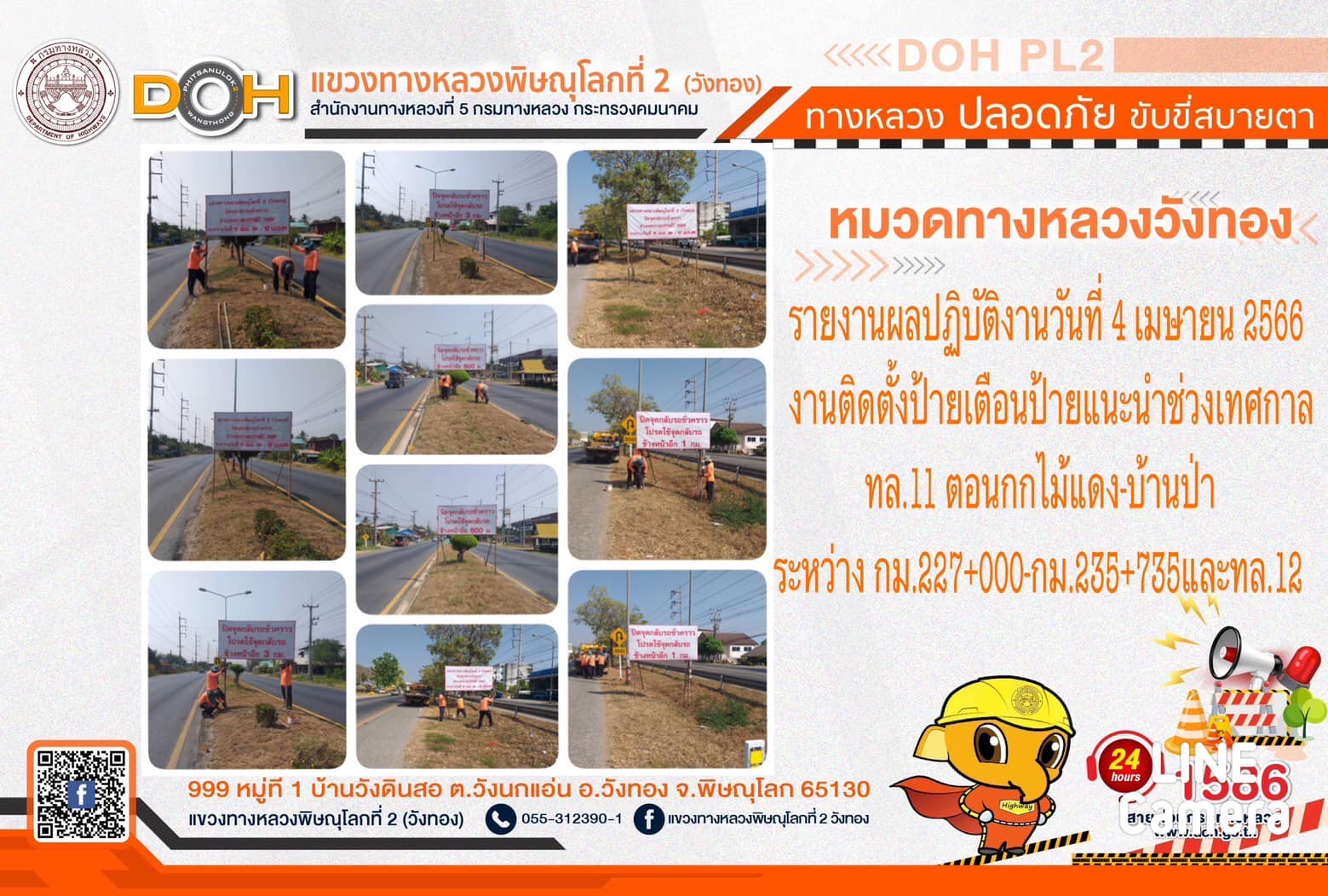 การปฏิบัติงานของ หมวดทางหลวง และ หน่วยงานในสังกัด เพื่ออำนวยความสะดวก และปลอดภัยให้กับประชาชนผู้ใช้เส้นทาง ประจำ วันอังคารที่ 4 เมษายน 2566