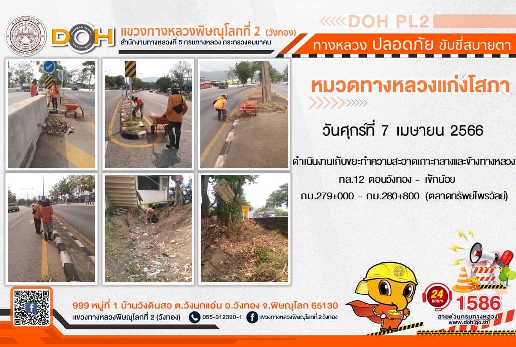 การปฏิบัติงานของ หมวดทางหลวง และ หน่วยงานในสังกัด เพื่ออำนวยความสะดวก และปลอดภัยให้กับประชาชนผู้ใช้เส้นทาง ประจำ วันศุกร์ที่ 7 เมษายน 2566